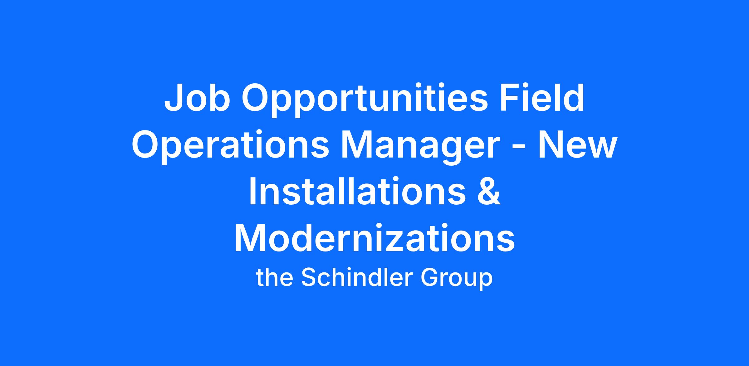 The Field Operations Manager - New Installations & Modernizations is responsible for managing new installations, and modernization operational activities through conforming to customer and company requirements as related to safety, cost improvement and customer satisfaction in support of Branch/District objectives. The Field Operations Manager will be responsible for managing, coaching and training field employees as well as maintaning health and safety requirements.