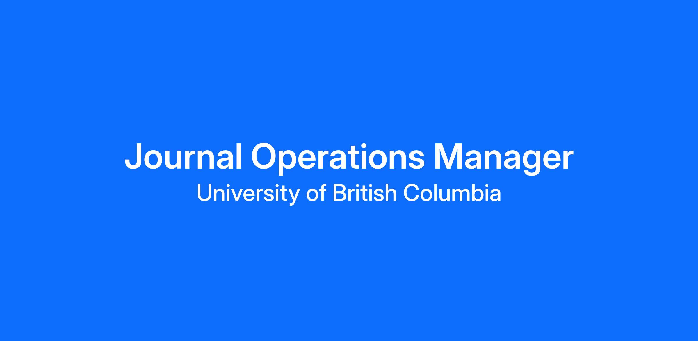 The Journal Operations Manager, Pacific Affairs facilitates the production of the journal and manages the administrative support and office environment of journal operations. The incumbent must exercise sound judgment in all administrative areas and initiate and sustain positive relations with many stakeholders, both internal to the institution including editors, production staff, and other departmental colleagues, and external stakeholders including Routledge, the editorial board, reviewers, authors, etc. The individual will need to exercise judgment in the development and sustainment of positive relationships that may impact the overall reputation of the Journal, School, Faculty, and University.