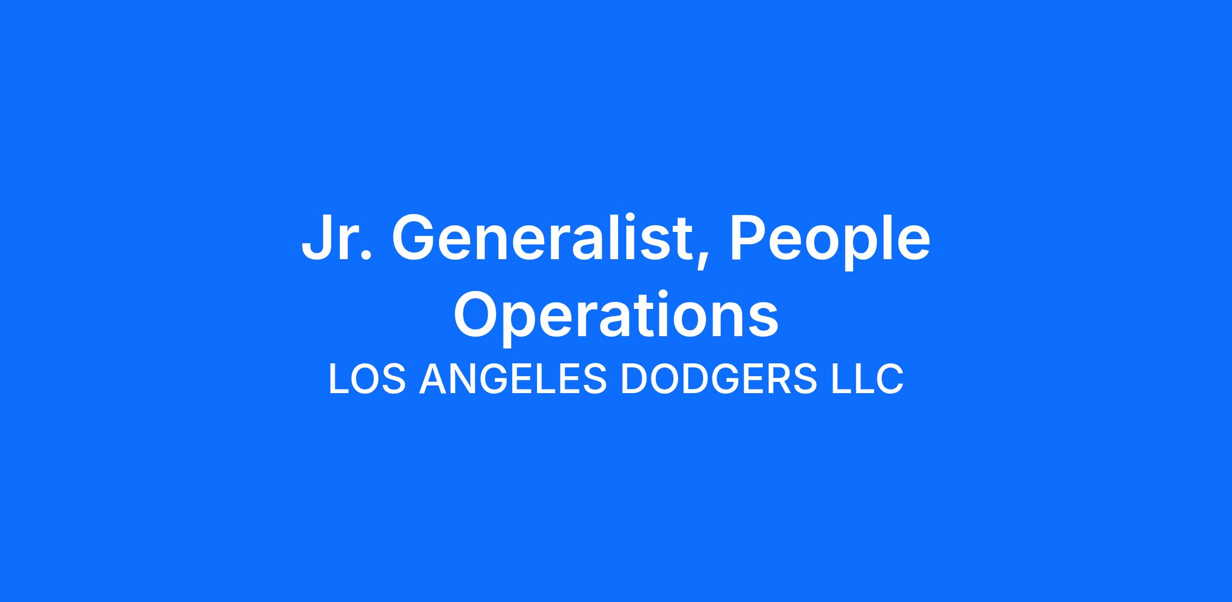 The Los Angeles Dodgers currently have a job opportunity for a Junior Generalist, People Operations. Following you will find a brief description of the job and application process. For additional information, please contact .