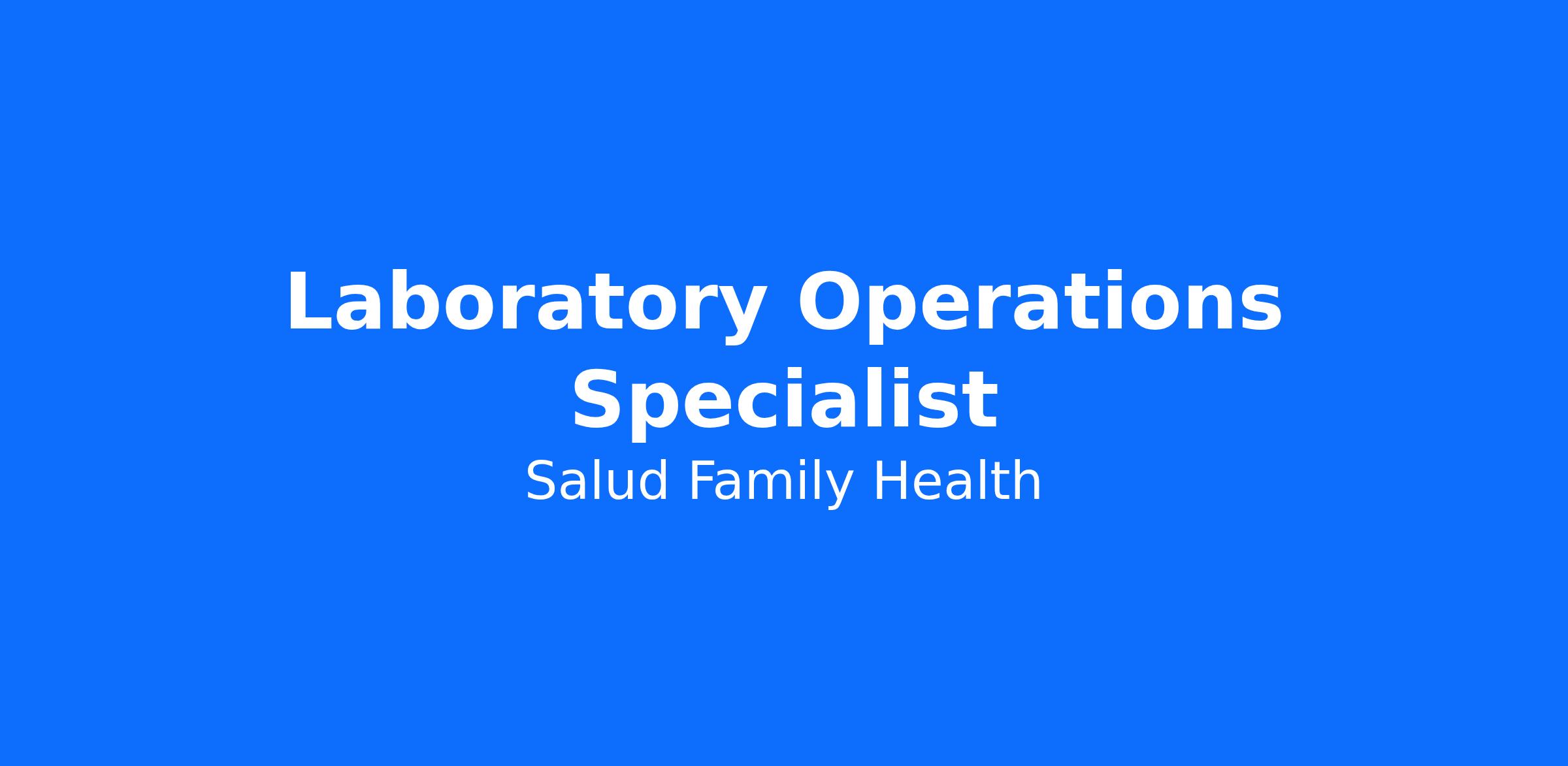The Laboratory Operations Specialist approaches his/her tasks in a team-based care fashion that supports patients and their families in self-management, self-efficacy and behavior change. Adheres to the spirit of the SALUD Mission Statement and Core Values while performing assigned duties.