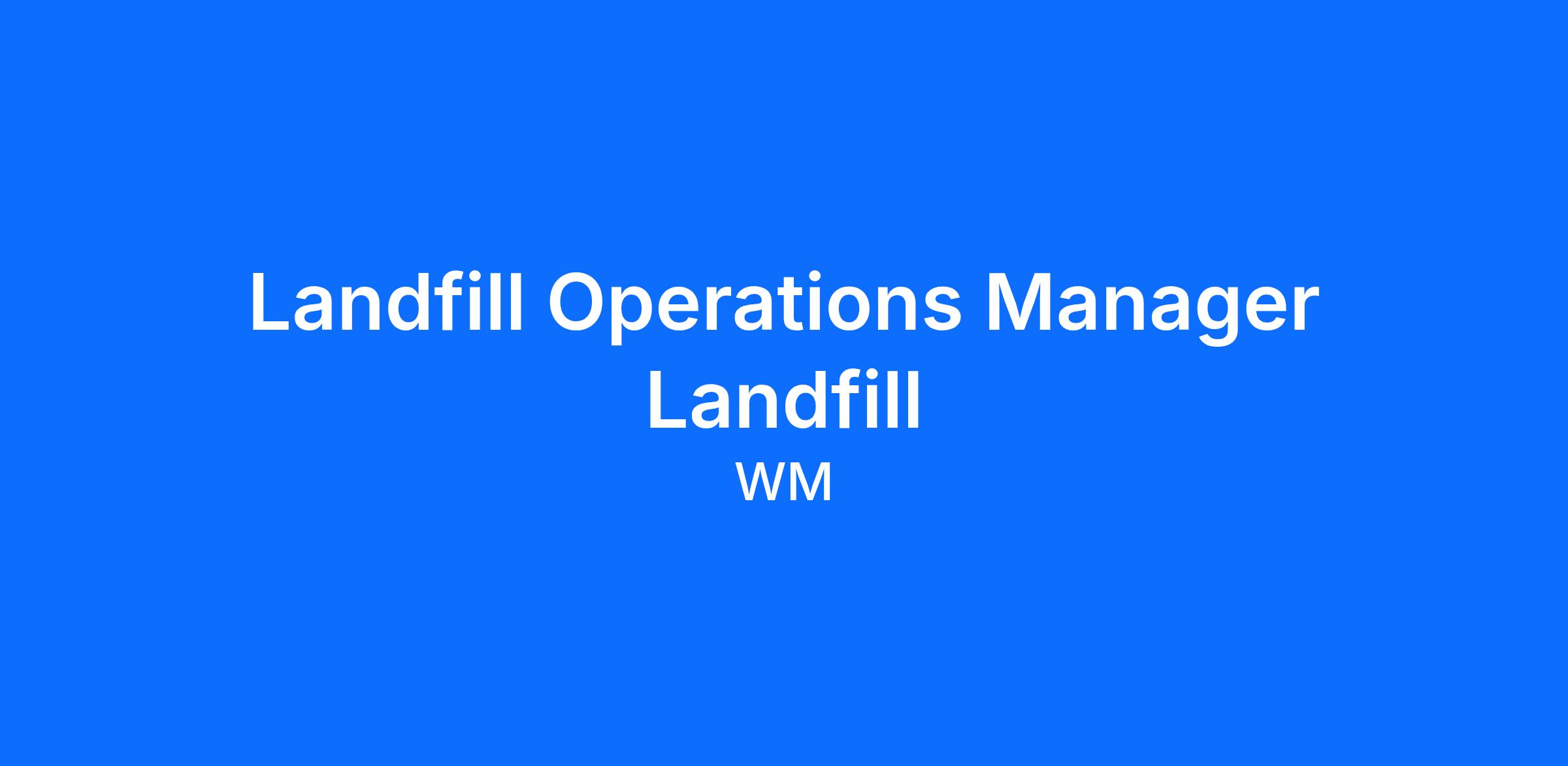 Ensures the highest standards of environmental safety and operational excellence by effectively managing the day-to-day operations of the landfill.