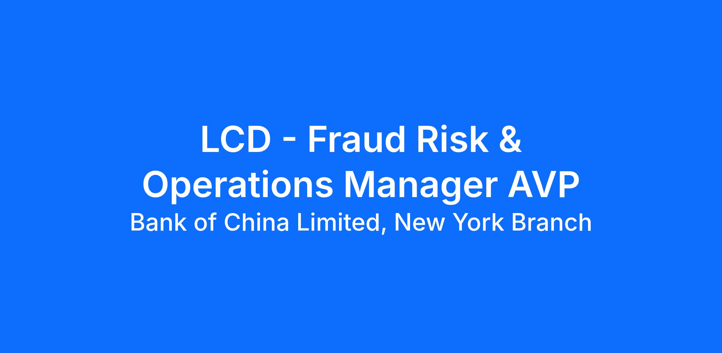 Reporting to the Head of Anti-Fraud, the Fraud Risk & Operations Manager is responsible for the day to day coordination and execution of the bank’s fraud risk management framework. The role helps maintain and enhance the framework for fraud prevention, detection and training across the BOC US (“BOCUS”) organization.