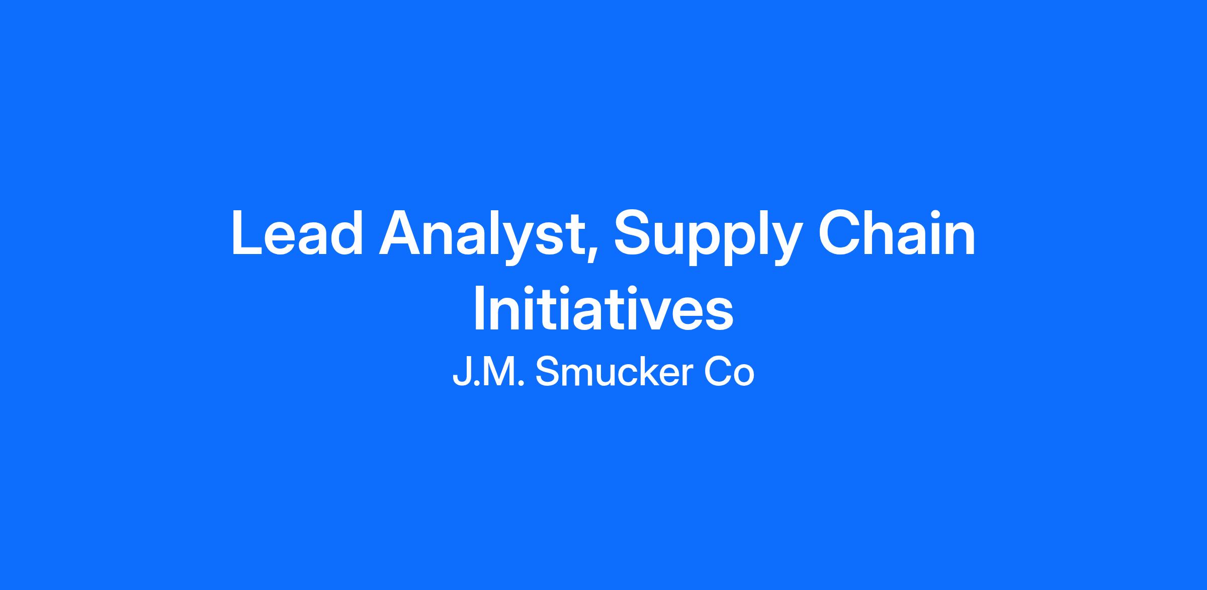 Your Opportunity as the Lead Analyst, Supply Chain Initiatives
