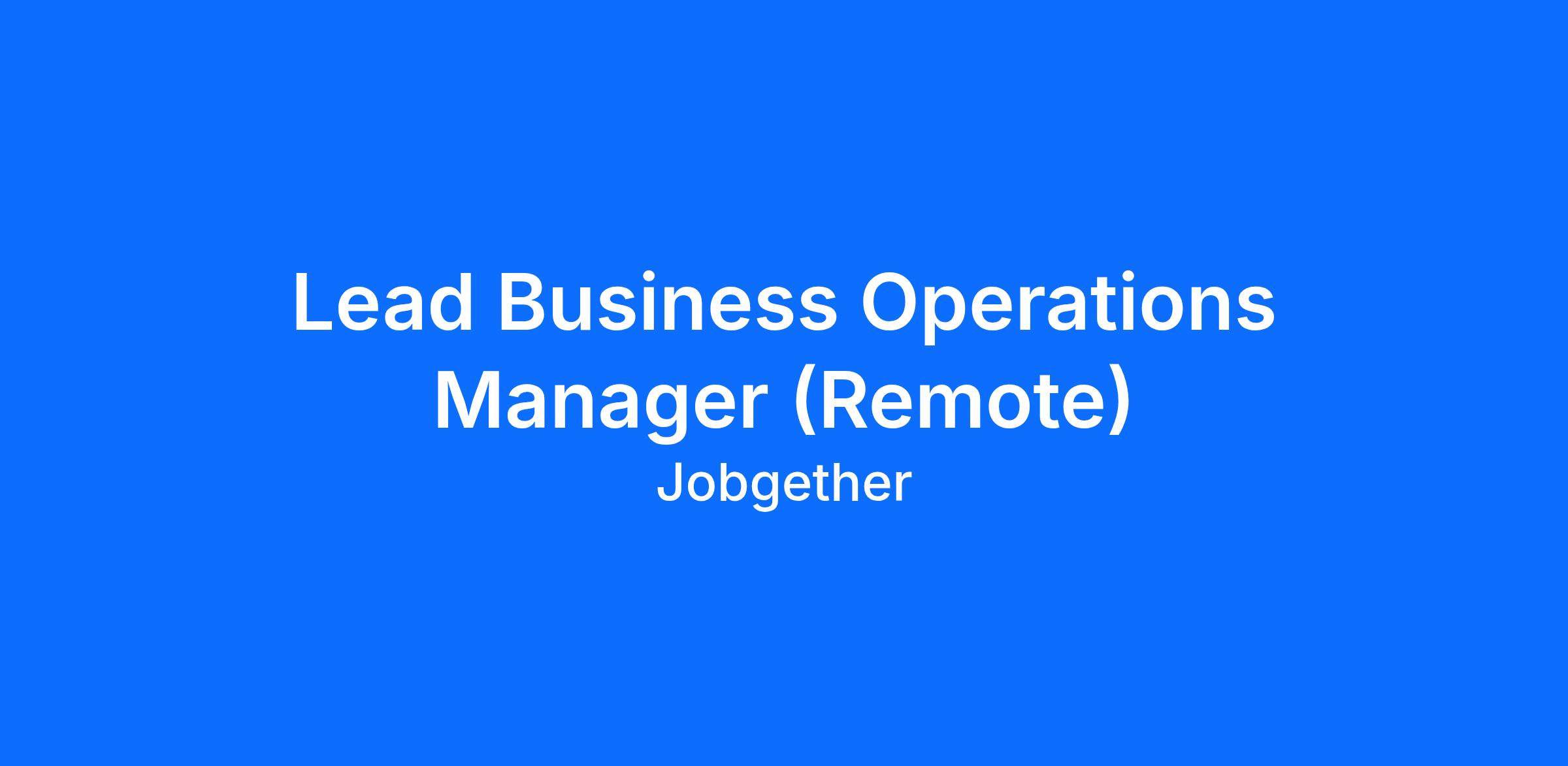 Lead Business Operations Manager (Remote)