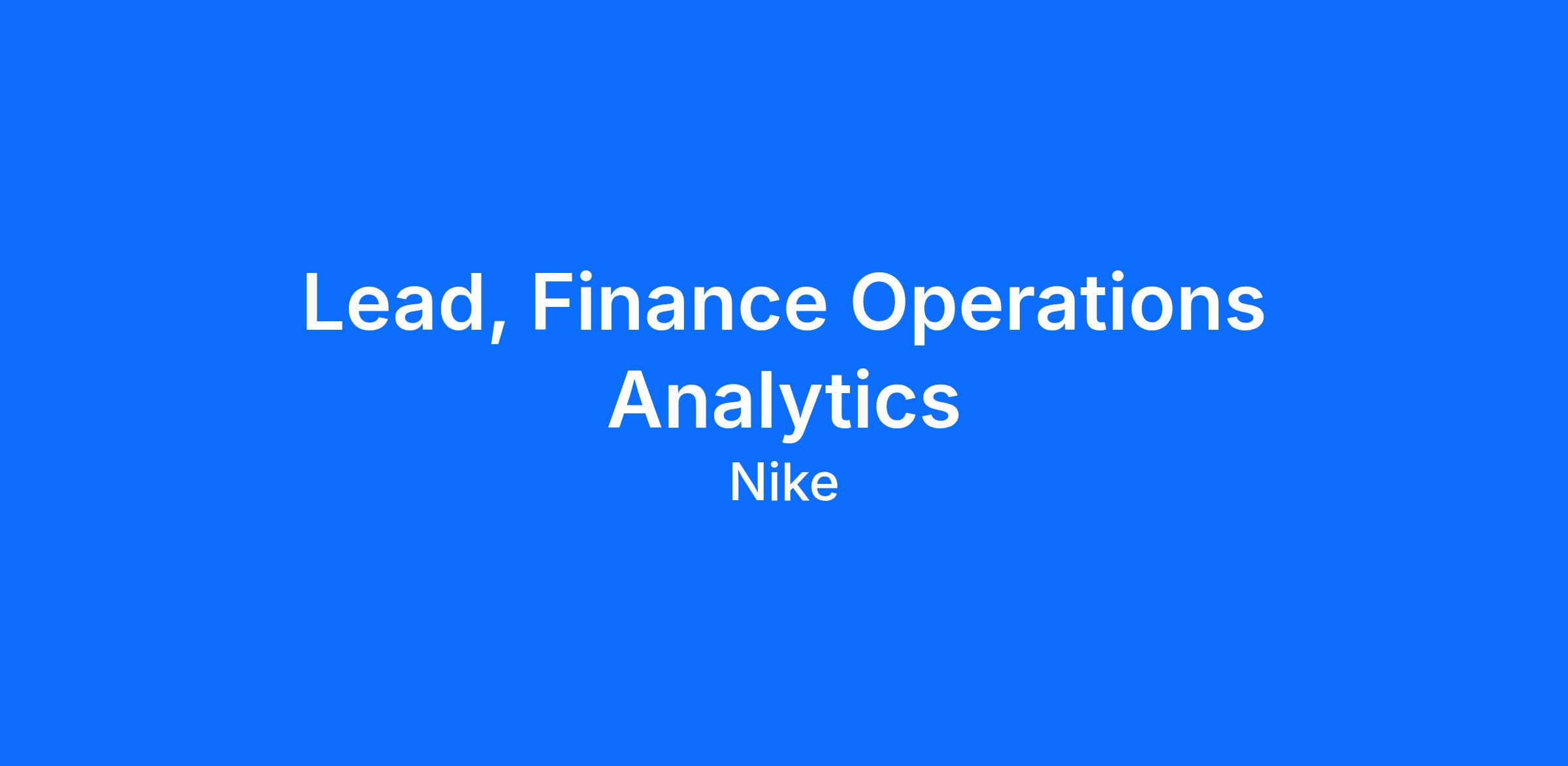 Lead, Global Finance Analytics will work closely with a diverse range of stakeholders across Nike’s global finance organization. This includes collaborating with Global Process Delivery teams, Technology enablement team, Finance Transformation teams, and Global Process Owners such as Record-to-Report, Order-to-Cash, and Procure-to-Pay. The role also involves partnering with regional and local finance operations teams, financial audit and compliance teams, as well as external consultants and managed service providers. Through these cross-functional relationships, the Lead, Finance Operations Delivery ensures that process improvement initiatives are aligned with business objectives, technology capabilities, and compliance requirements, driving operational excellence throughout the organization.