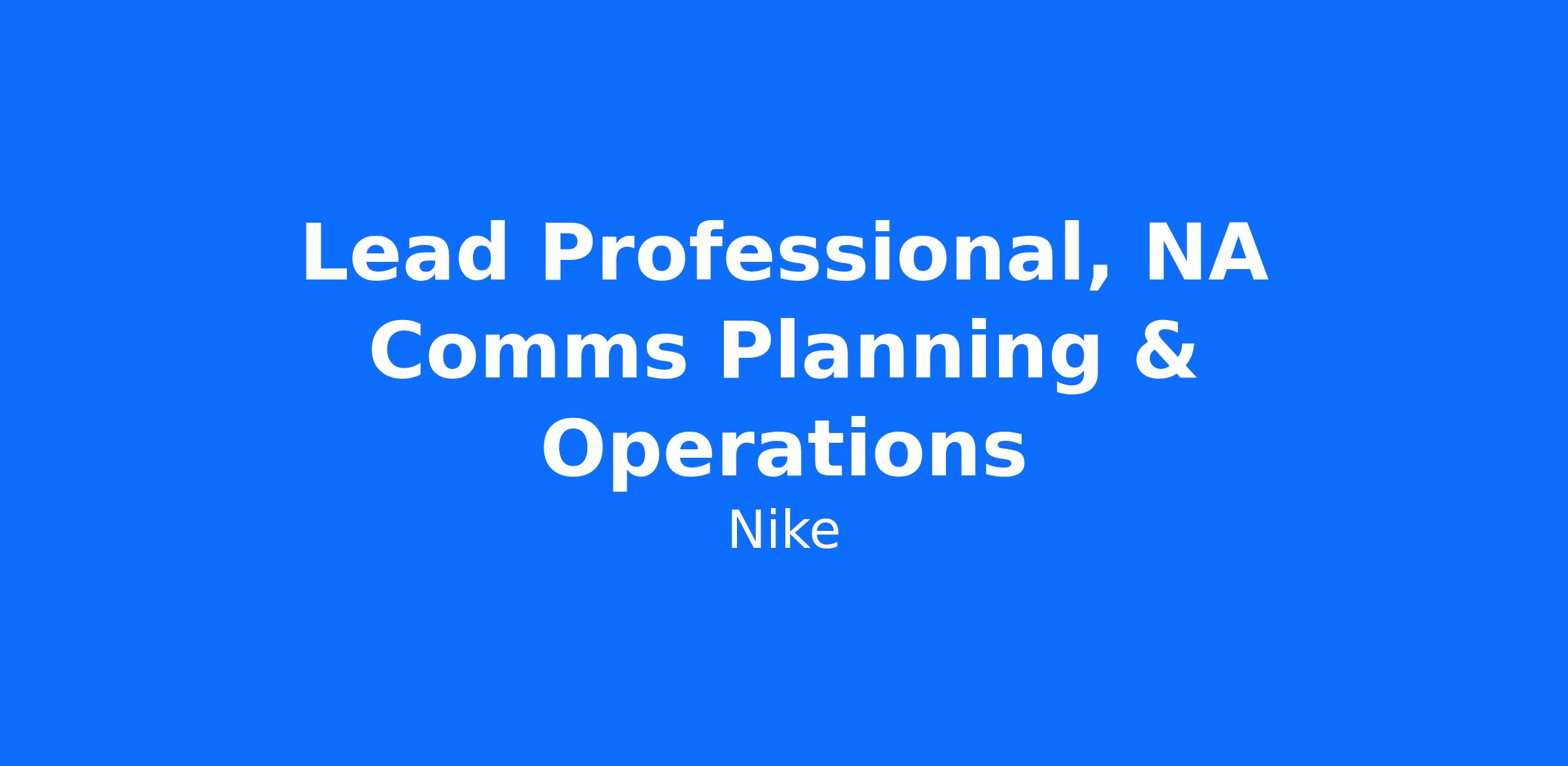 We’re looking for a Lead Professional, NA Communications Planning & Operations who is seasoned at driving operational excellence and rigor in all aspects of planning and operations within a fast paced and dynamic functional environment. Your experience will deliver essential capabilities in thought partnership, planning and operations to support and scale communications effectiveness across the NA communications team. This person is also responsible for helping our geo brand teams implement a measurement approach building on the foundations of our global functional metrics. By executing operational strategies and establishing streamlined processes, the Lead Professional will ensure the team consistently delivers high-impact brand and business communications work and moves at speed to prioritize, align and activate our must win projects.