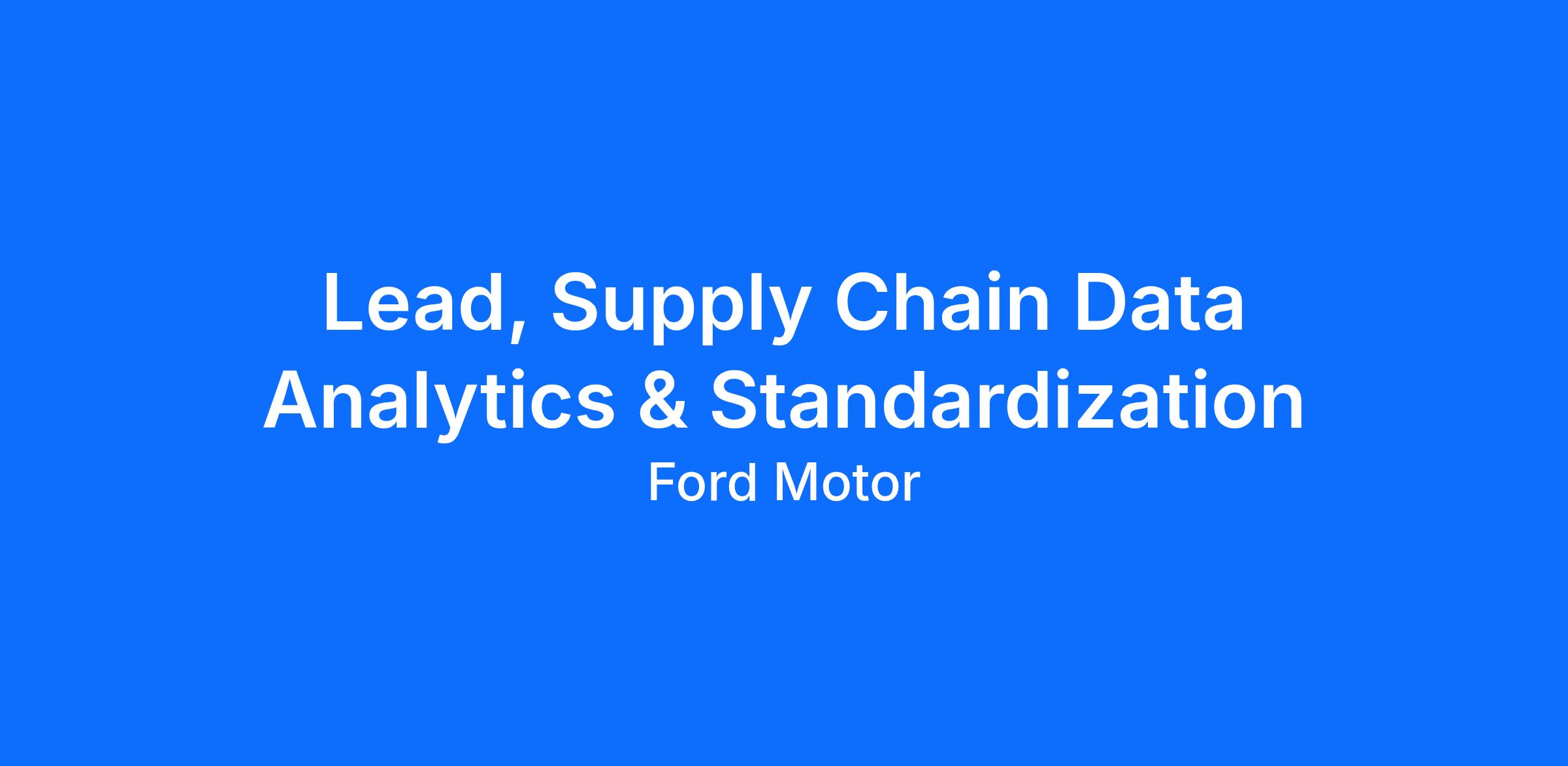 Ford Motor Company is seeking a highly analytical and strategic Lead to join our Global Supply Chain PMO. This role is pivotal in driving the standardization and visualization of complex data sets to support the Business Office, Excellence team, and the broader Supply Chain organization. As the primary architect for how our Global Purchasing organization visualizes and interprets mission-critical data, you will bridge the gap between complex data architecture and executive decision-making. We are looking for a leader who can transform raw, complex data into a "single source of truth," ensuring that our data capabilities remain agile, informed, and standardized