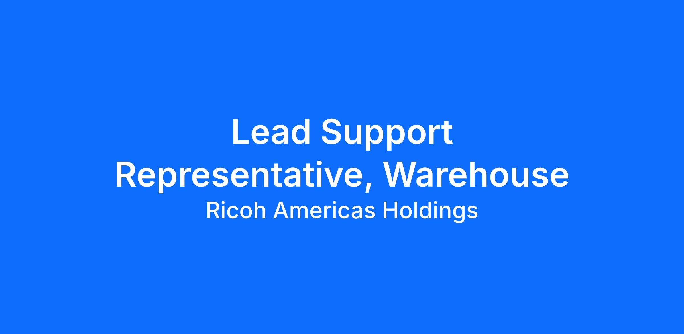 Lead Support Representative, Warehouse Position Profile