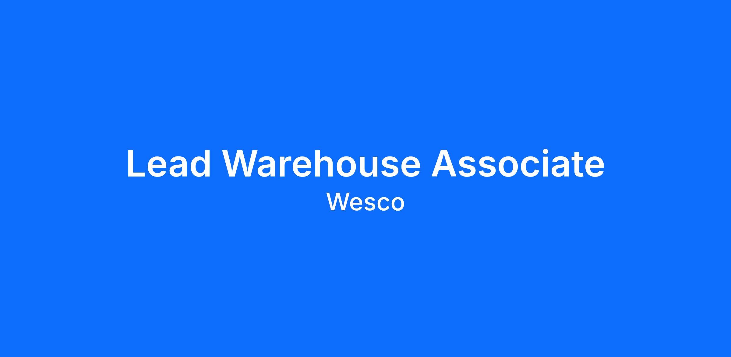 We are hiring immediately for a highly motivated warehouse worker as a Team Lead at our distribution facility. We will teach you about distribution and supply chain techniques valued by Fortune 250 companies around the globe. We are Wesco. We enable the connected world – you help turn on the lights.