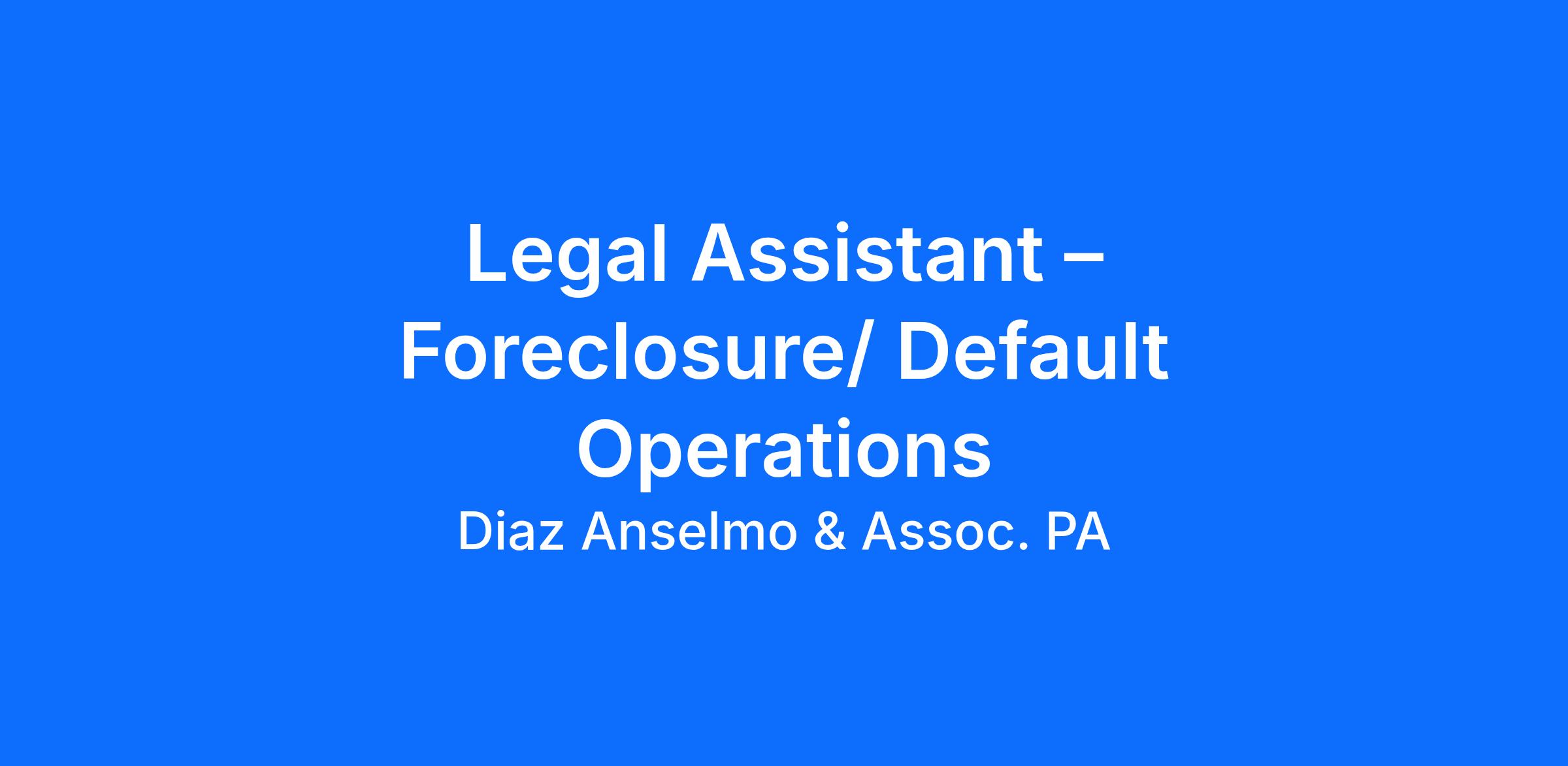 - 2–4 years of experience as a Legal Assistant or Paralegal (foreclosure or real estate litigation experience strongly preferred).