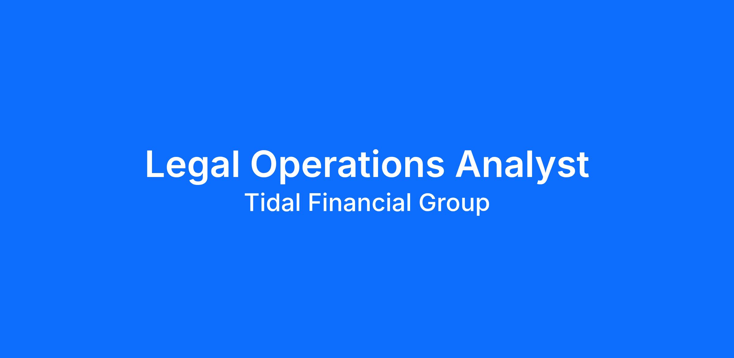 - Tidal is seeking a Legal Operations Analyst to support our legal and contracts team by managing contract intake, coordinating reviews, and executing repeatable legal workflows. This role is central to keeping legal processes organized, accurate, and moving efficiently across the organization.