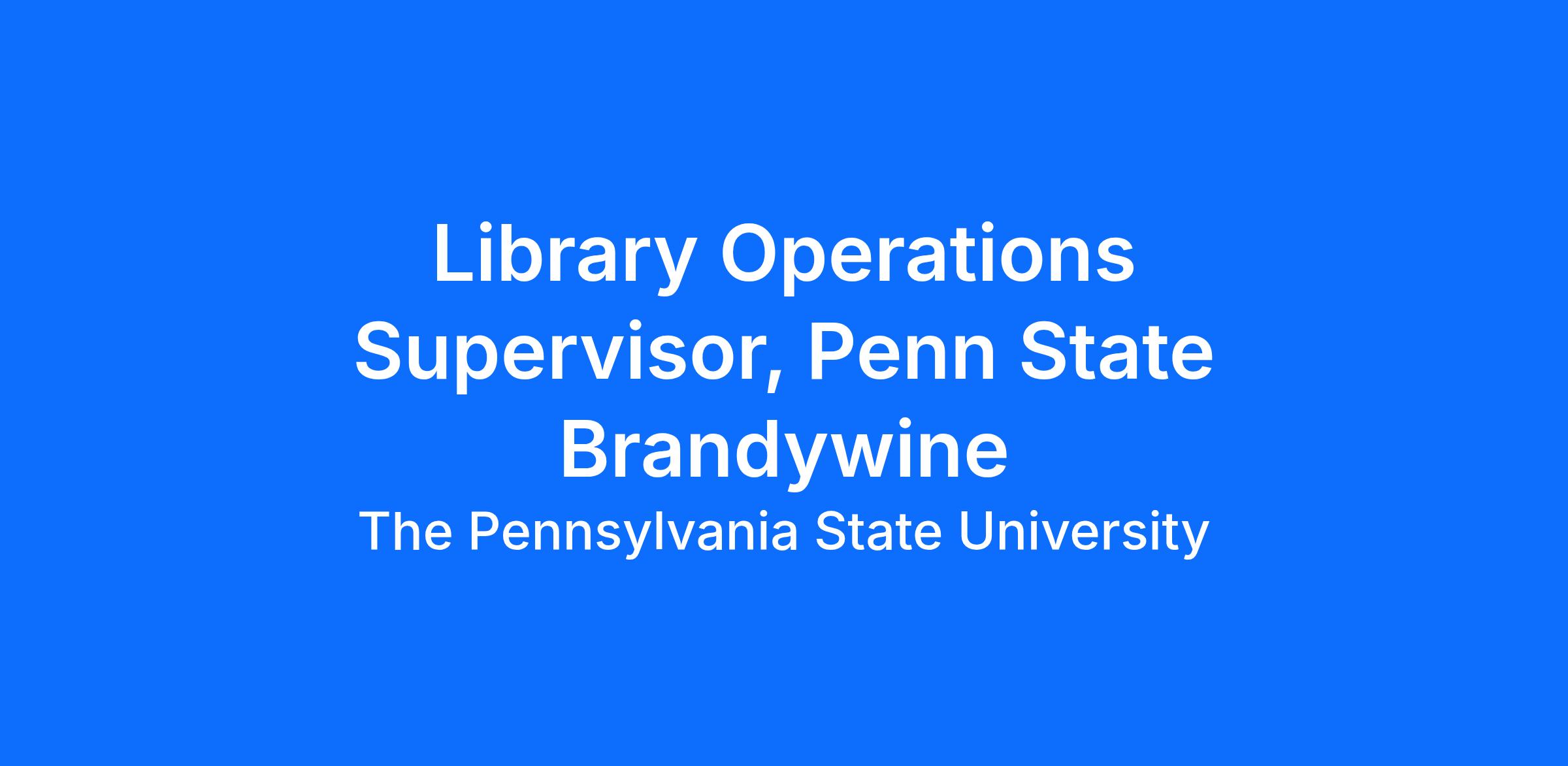Penn State Brandywine, located about 20 miles outside of Philadelphia, is seeking a Library Operations Supervisor to lead the daily operations of its library with an emphasis on circulation, collection maintenance, and customer service.
