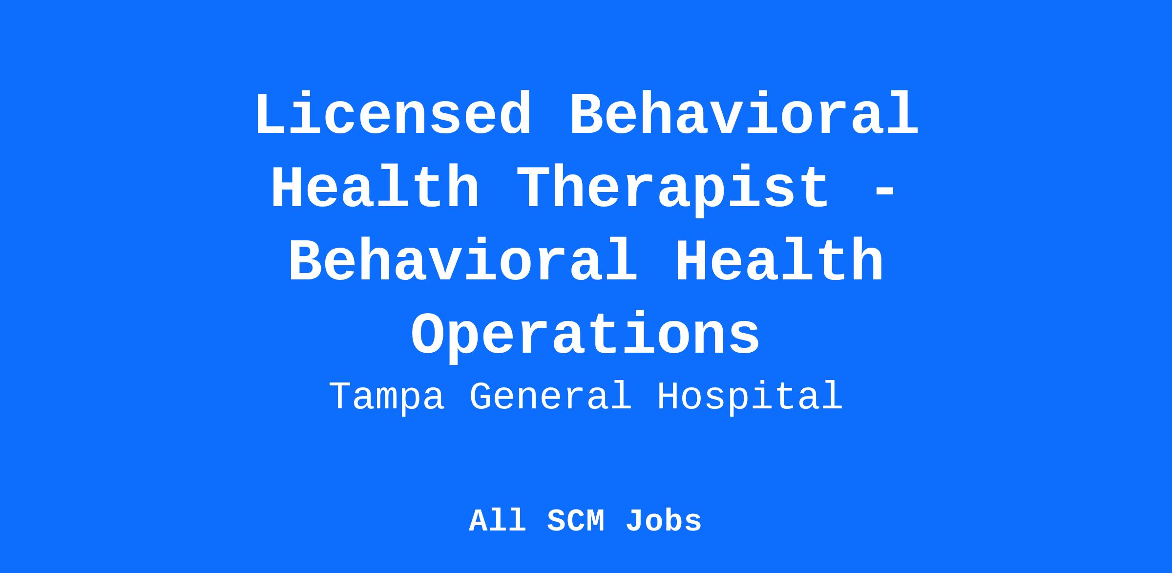 The Licensed Behavioral Health (BH) Outpatient Therapist provides culturally competent, ethical, and compassionate behavioral health services to individuals, families, and couples in an outpatient setting. This role is essential in supporting patients with diverse backgrounds and mental health and substance use needs, helping them achieve emotional wellness and improved quality of life. Responsible for performing job duties in accordance with mission, vision, and values of Tampa General Hospital.