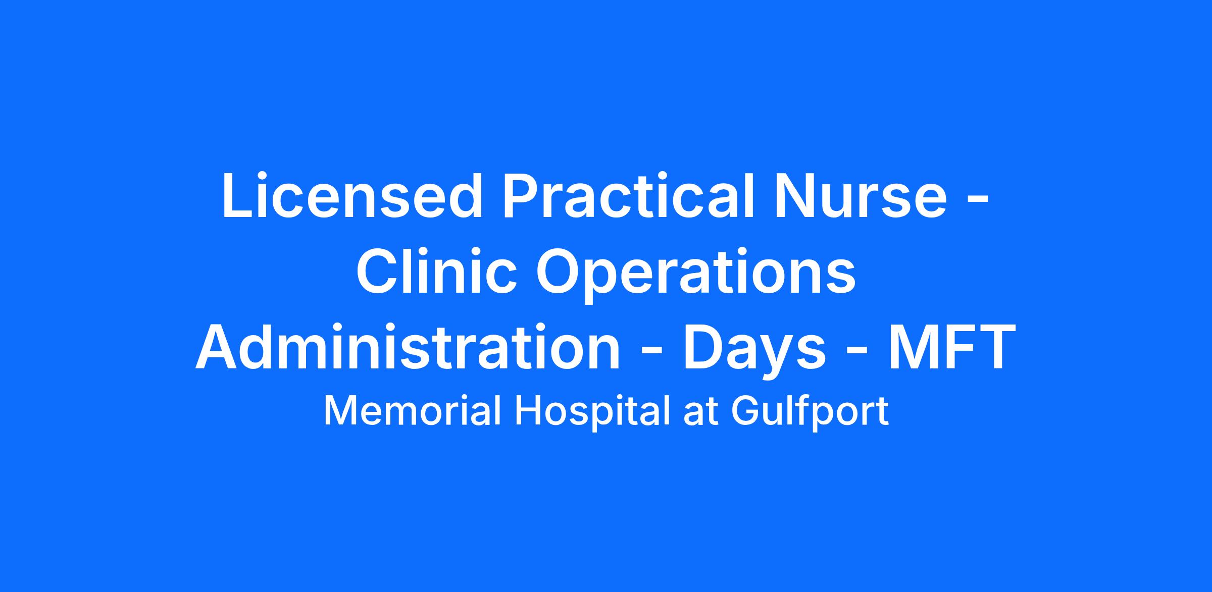 Under the supervision of the Provider(s) in the clinic, the Licensed Practical Nurse (LPN) is responsible for assisting with patient care services as delegated or assigned; and will function within the scope of practice according to the Mississippi State Board of Nursing. The LPN collaborates with all clinical staff, patients, and their families.