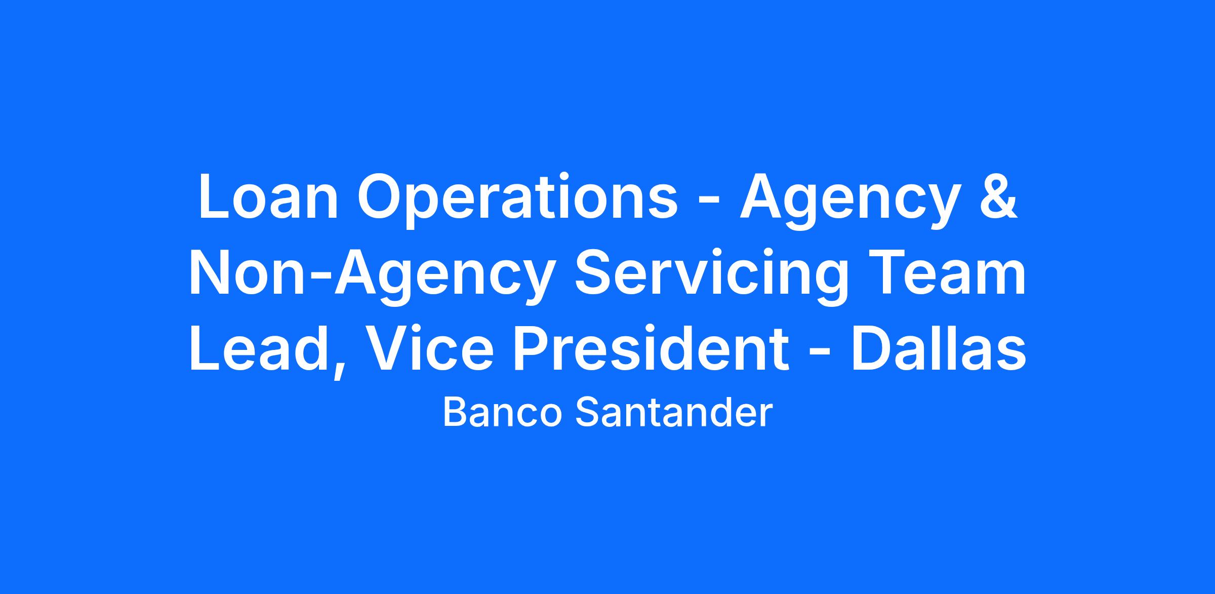 - 5+ years of experience in loan operations, with experience in a management or supervisory or leadership role.