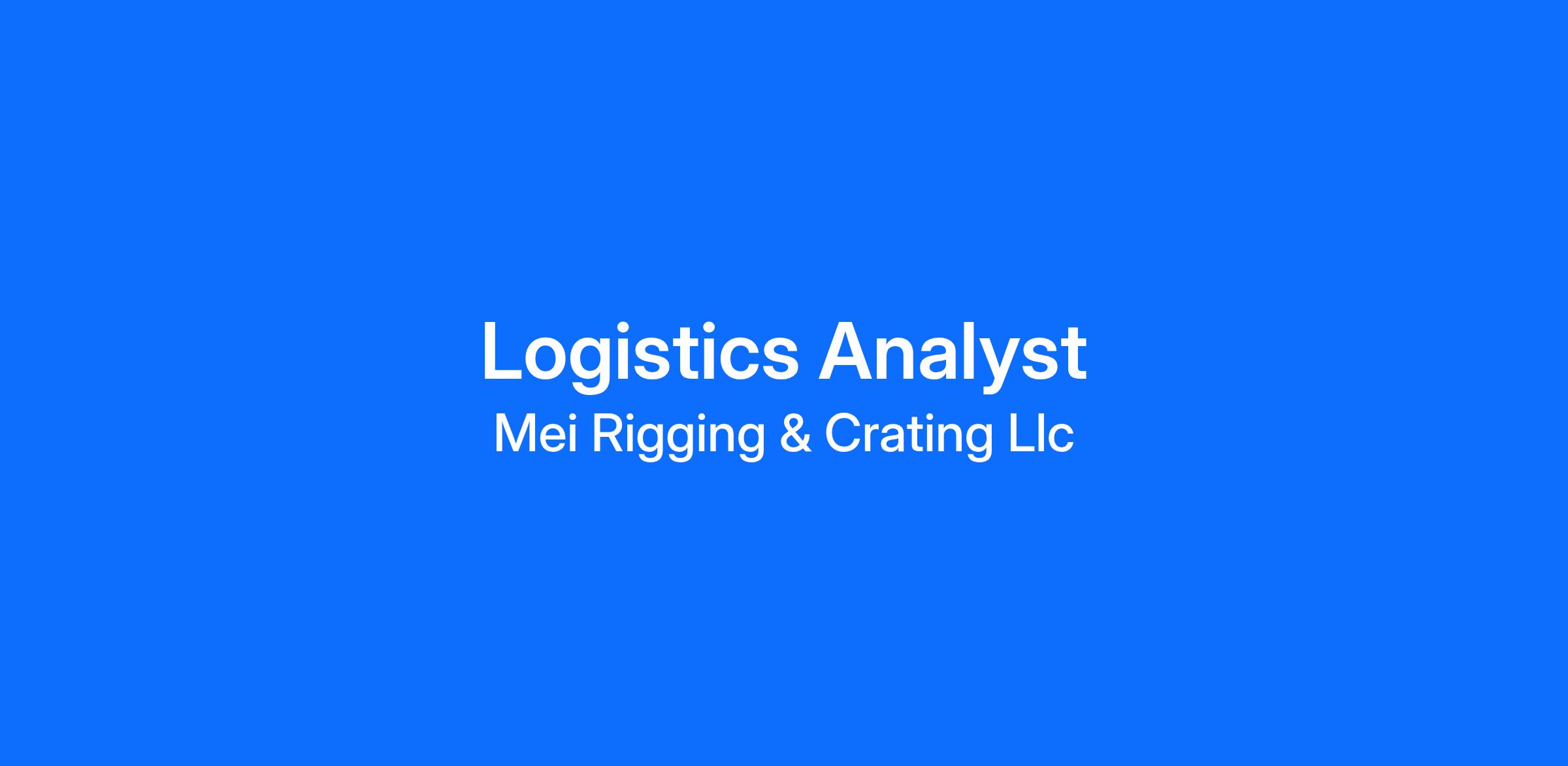 Logistics Analyst Position Summary: