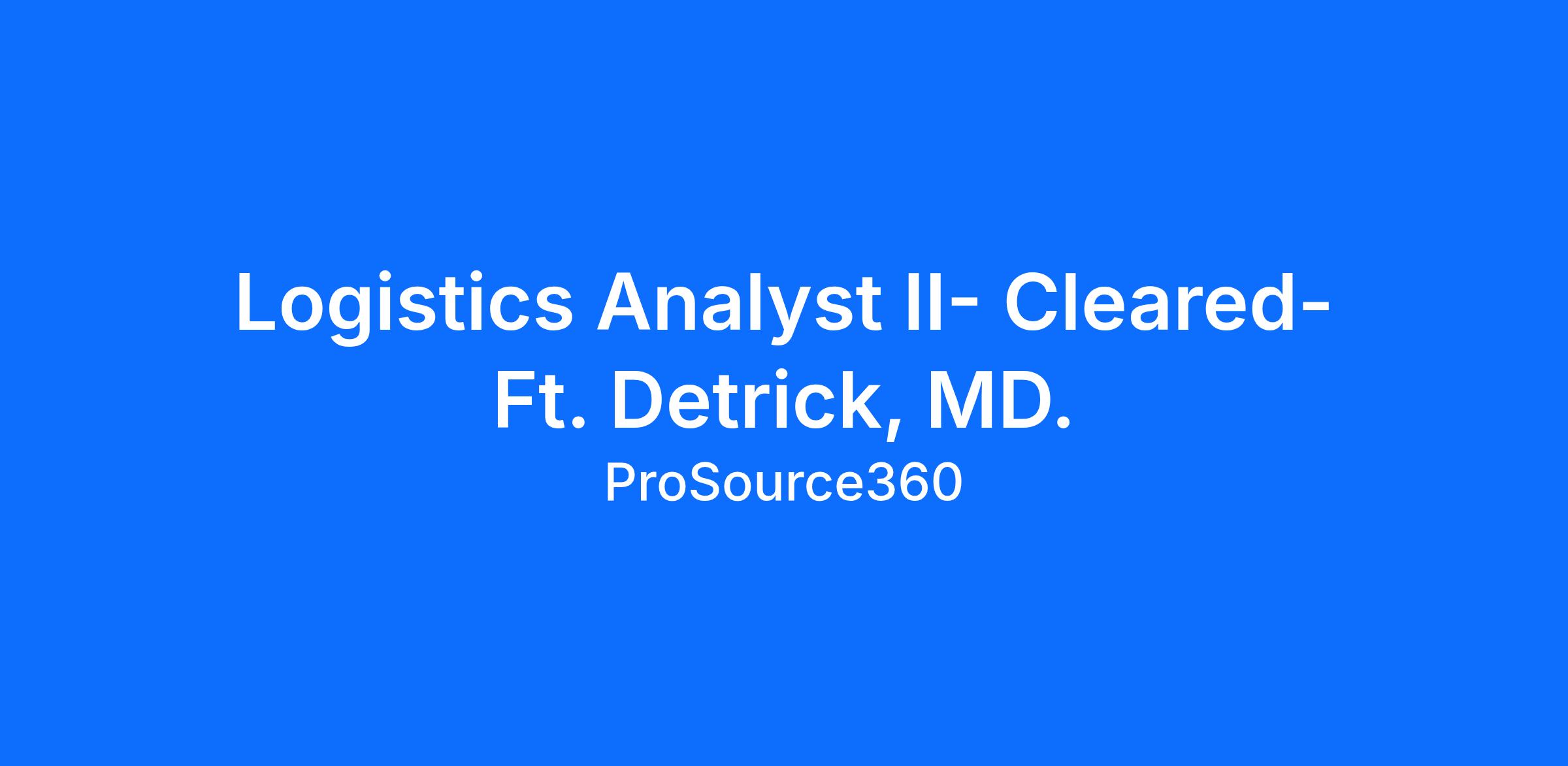 ProSource360 Consulting Services, Inc. is seeking several Logistics Analyst II’s with Secret Clearances in support of USAMMDA Materiel Fielding services, operating out of Ft. Detrick, MD. This position requires frequent travel (~70% travel) and flexibility to meet mission requirements.