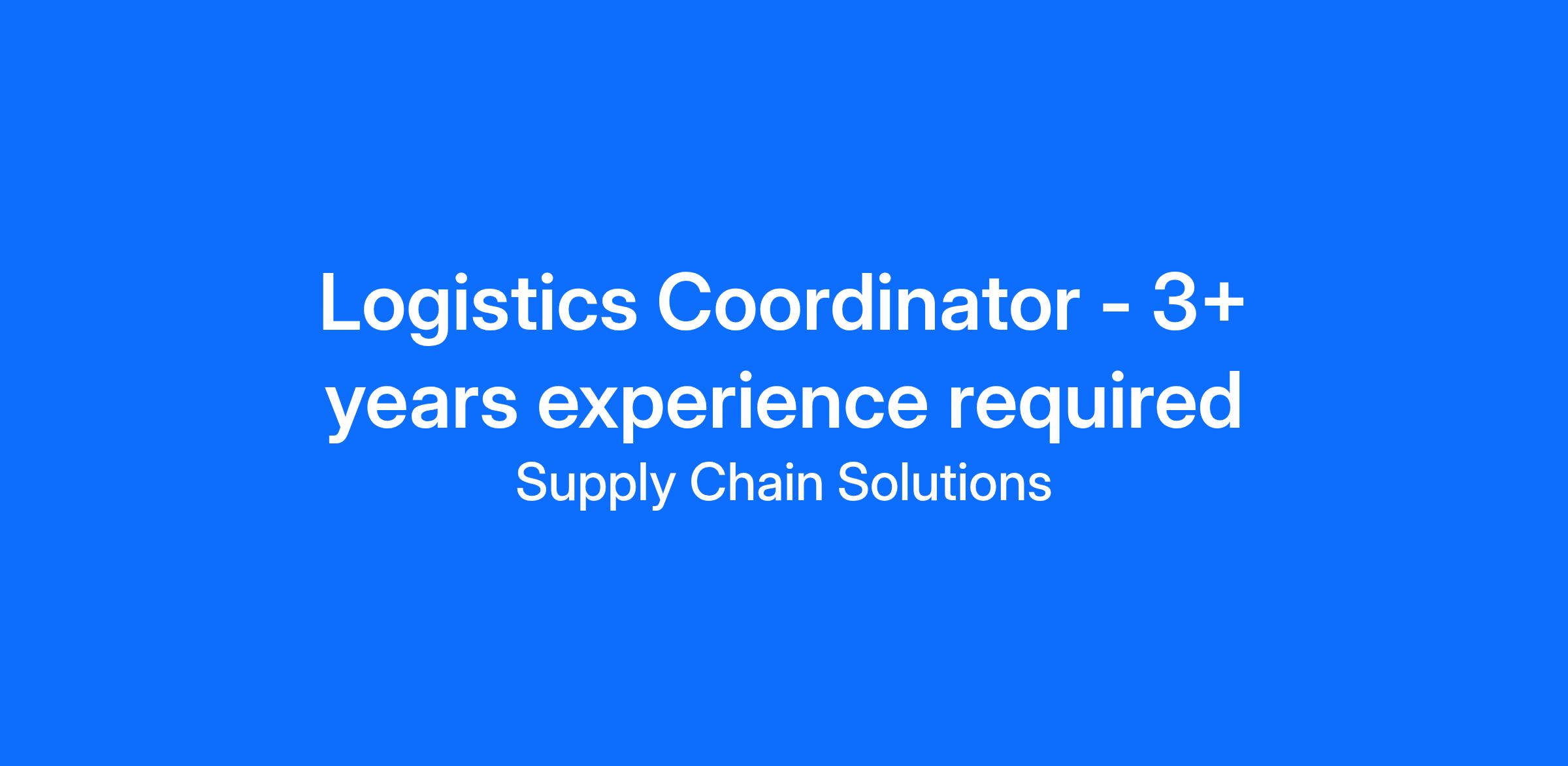 We are seeking to fill a full-time Logistics Coordinator role on our operations team. Position requires a minimum of three years of freight brokerage experience.
