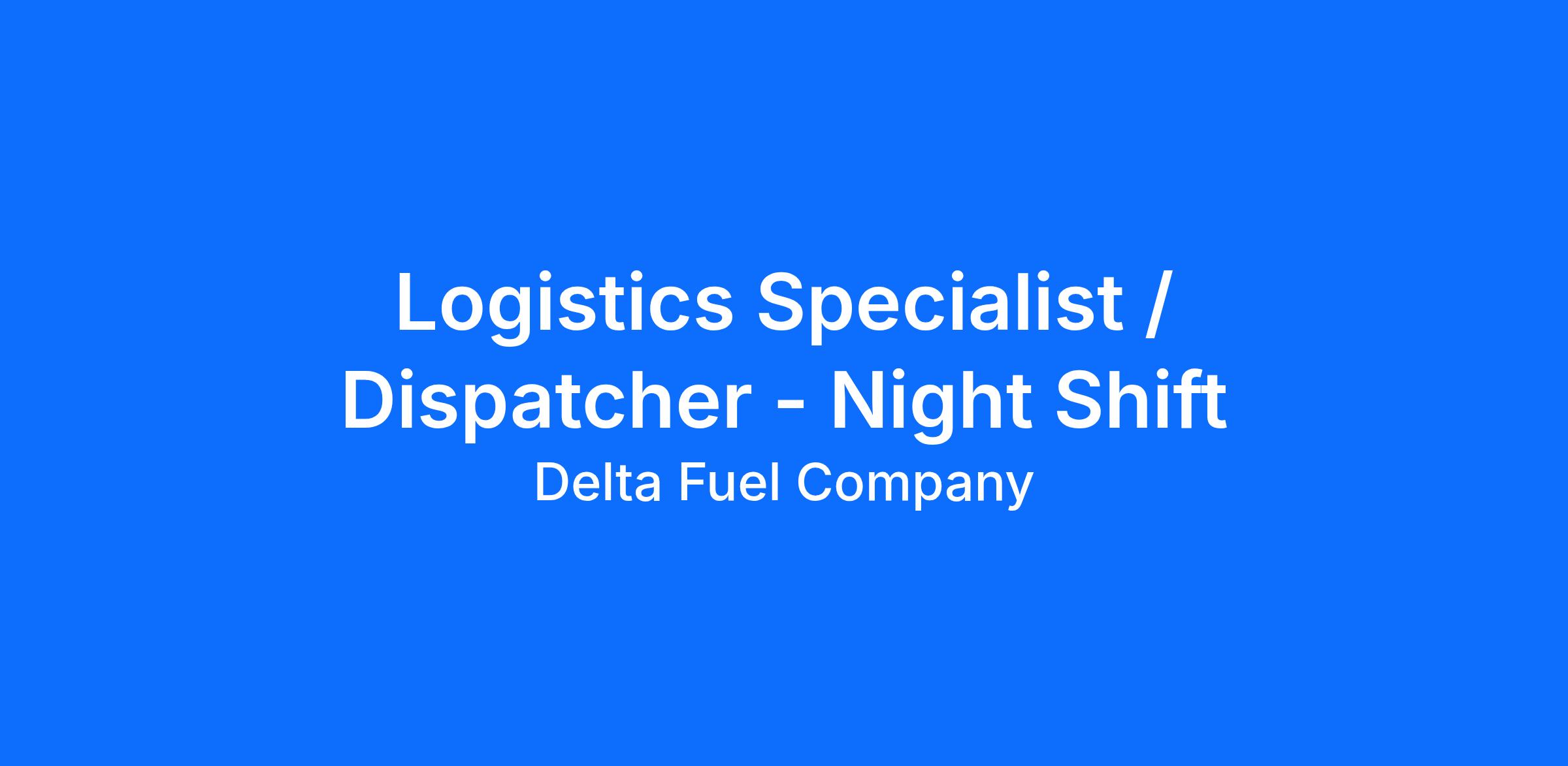 Take advantage of a unique opportunity to join our team at Delta Fuel Company as a Dispatcher. The dispatcher is a very important roll at Delta Fuel Company. The dispatcher is responsible for planning and managing logistics, overseeing drivers’ day to day operations, and customer service. This position will act as the point of contact for customers while managing all aspects of the order from creation to completion. This is a wonderful opportunity to become an important member of the team at Delta Fuel.