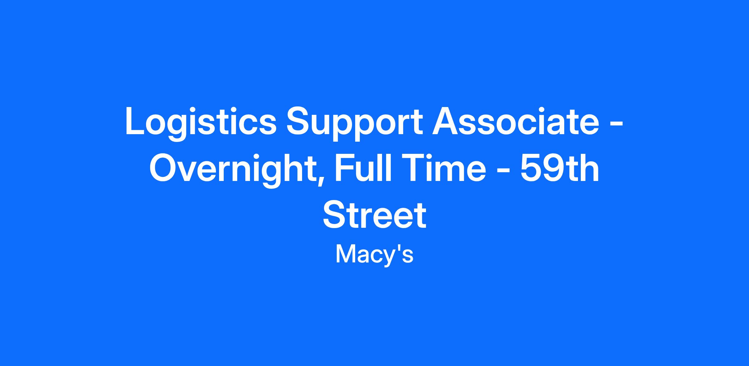 This job description is not all inclusive and may not apply to colleagues covered by a collective bargaining agreement. Macy’s, Inc. reserves the right to amend this job description at any time. Macy’s, Inc. - including Macy’s, Bloomingdale’s, and Bluemercury - is an equal opportunity employer, committed to a diverse and inclusive work environment.