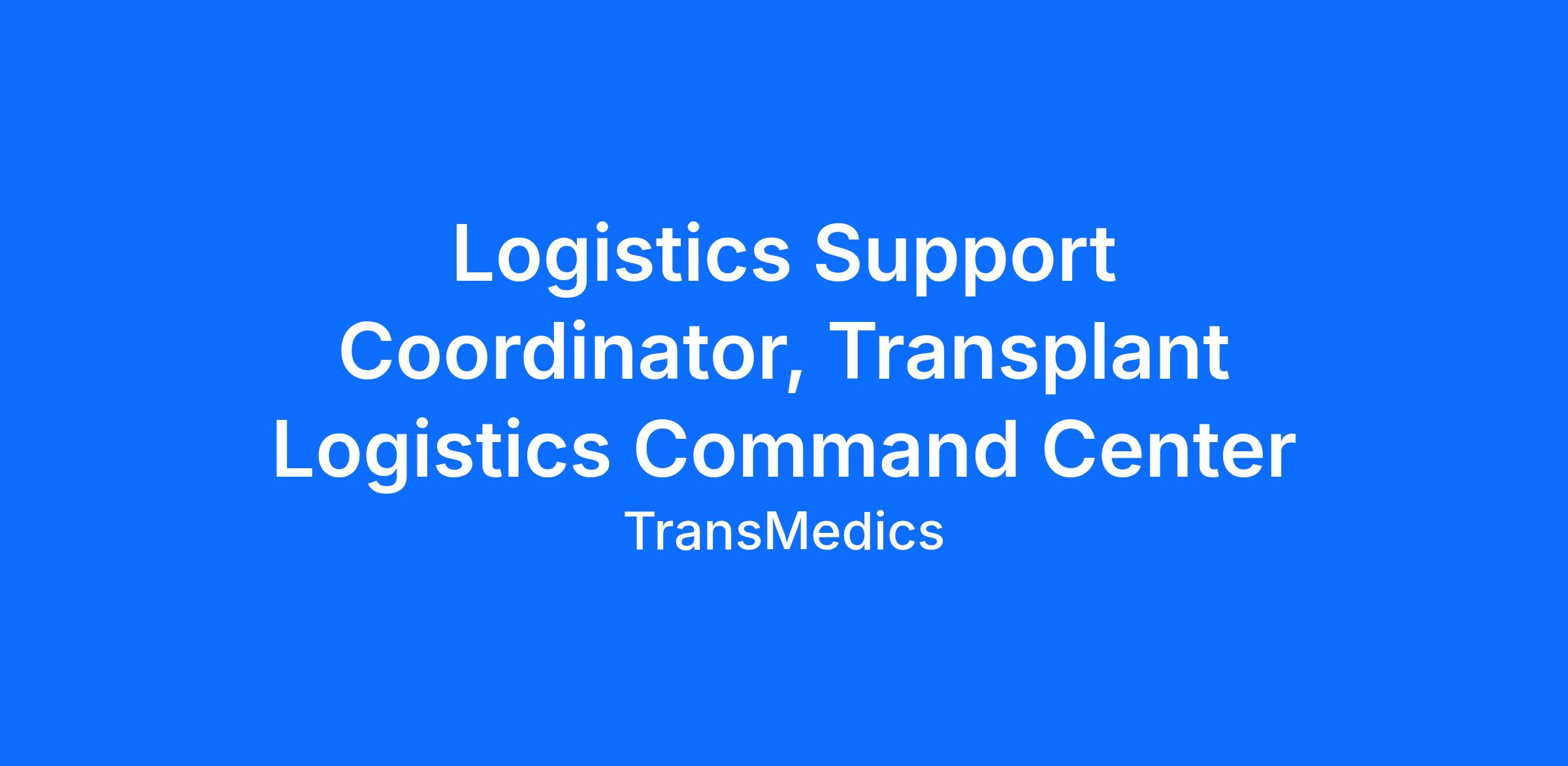 Transplant Logistics is a recently created organization responsible for leading all aspects of TransMedics’ transplant logistics, enabling the exponential growth of the National OCS Program (NOP). The team’s comprehensive scope includes data analytics, network and topology design, capacity planning, product and program management, and the daily execution of air and ground transplant logistics operations, managed by a world-class central command center operating 24/7. The Logistics Support Coordinator is part of the Transplant Logistics Command Center and supports TransMedics team members before, during and after missions.