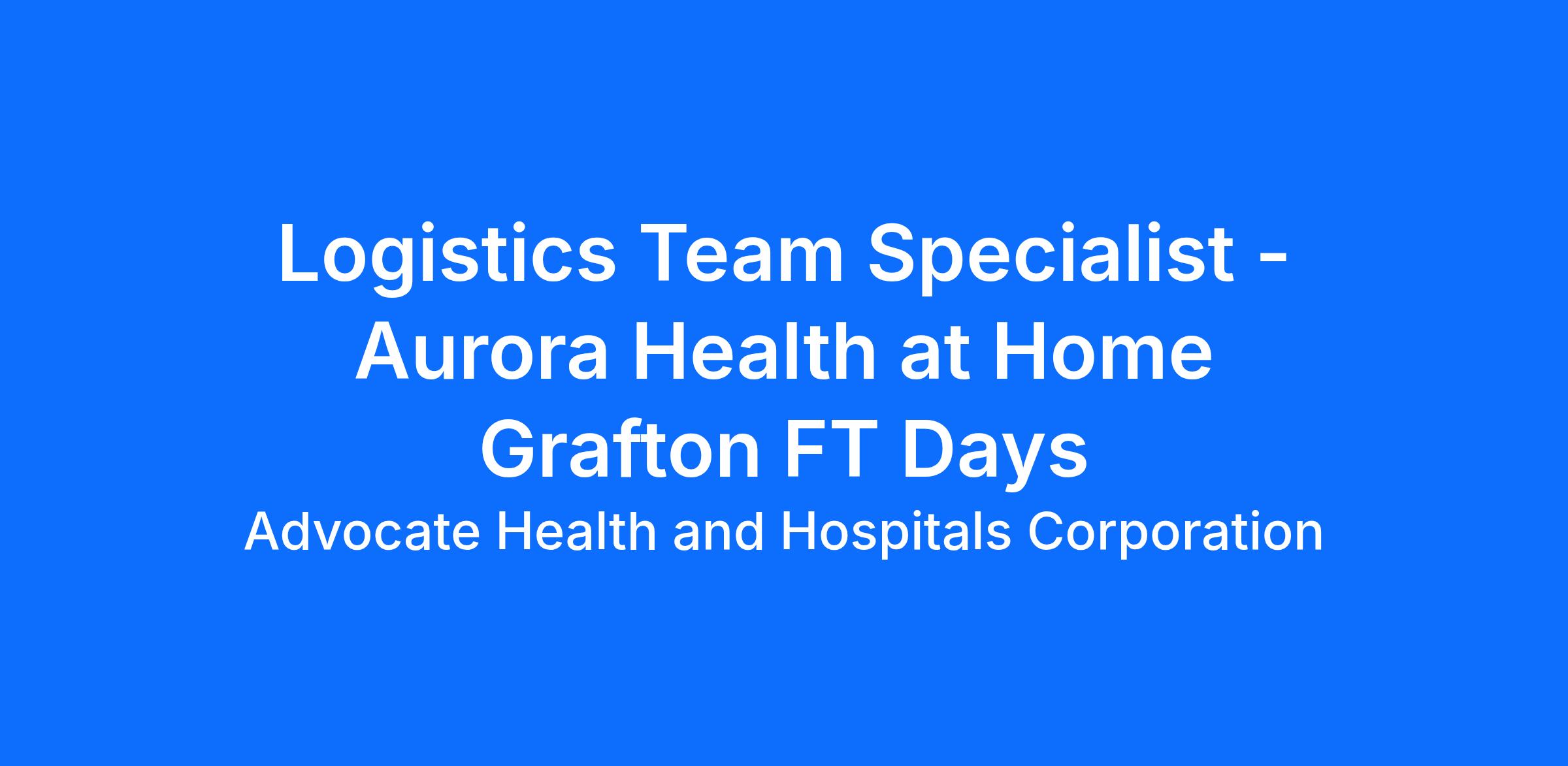 Logistics Team Specialist - Aurora Health at Home Grafton FT Days