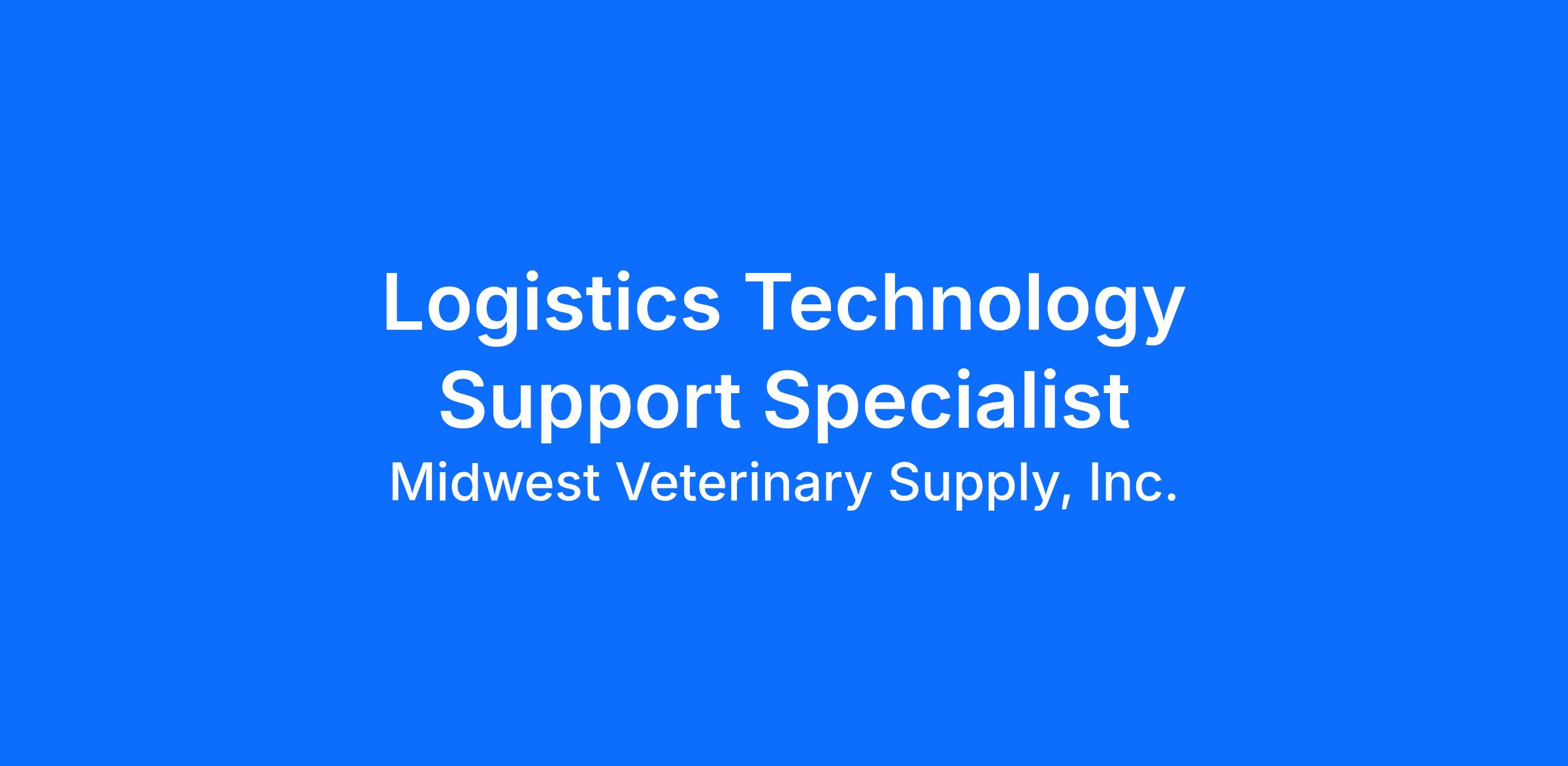 Midwest Veterinary Supply is seeking a full-time Logistics Technology Support Specialist for our Lakeville, Minnesota corporate office. This is a remote role, with the ability to spend up to 10% time traveling to our Distribution Center locations and onsite at our Lakeville Corporate location.