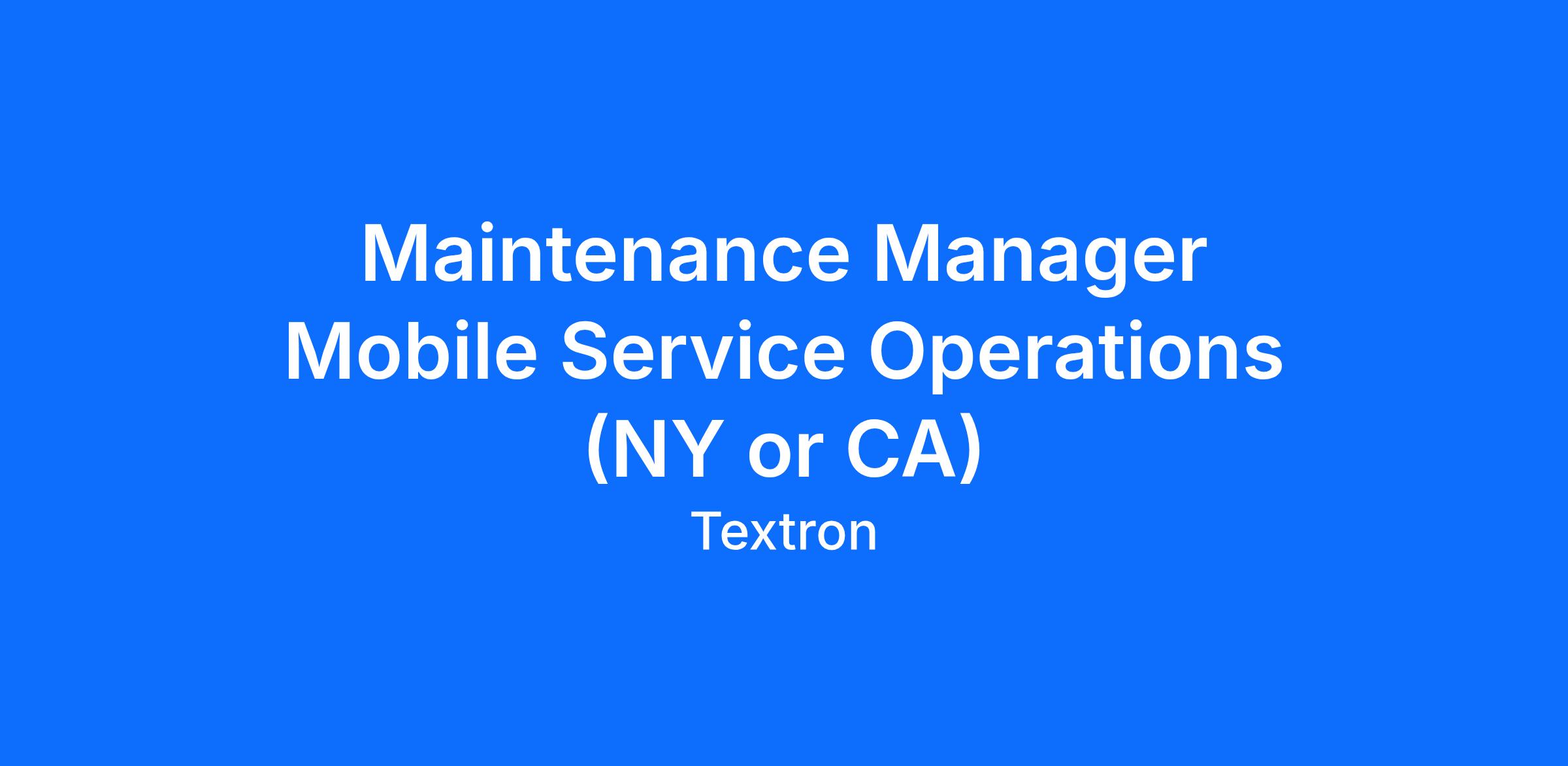 Maintenance Manager Mobile Service Operations (NY or CA)