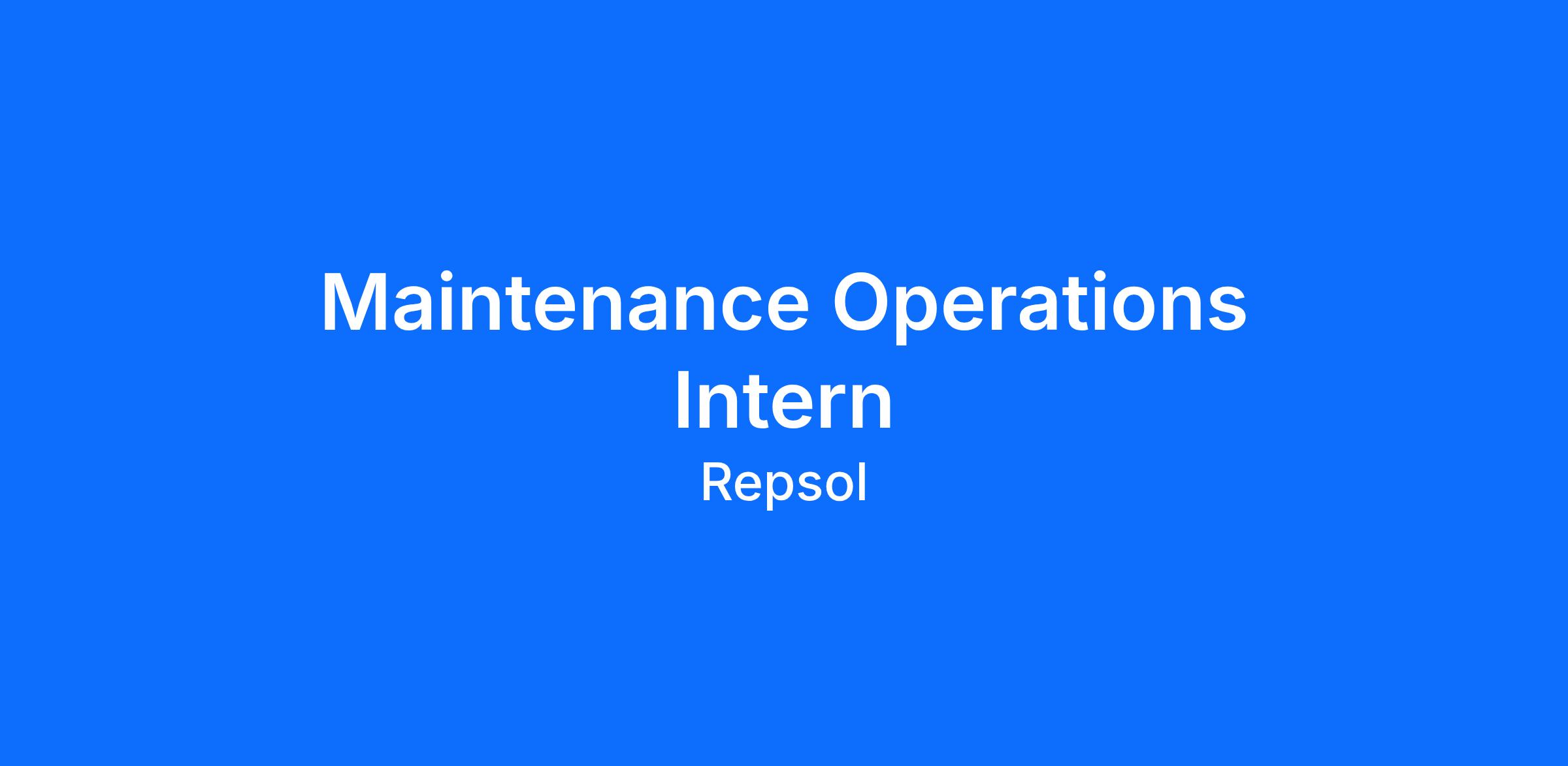 The Maintenance Operations Intern will support the day‑to‑day maintenance, reliability, and operational readiness of Repsol’s field equipment and production facilities. This role is ideal for students who enjoy hands‑on mechanical work, problem‑solving, and active time in the field. The intern will work closely with Maintenance Technicians, Field Operators, and Production teams to help ensure that equipment is safe, reliable, and operating efficiently.