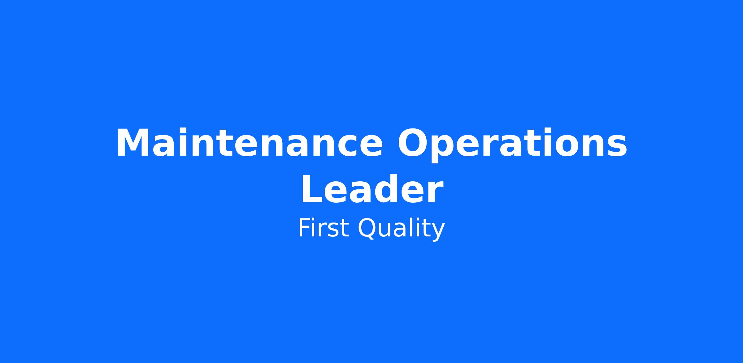 We are seeking a Maintenance Operations Leader for First Quality Products located in McElhattan, PA. This position will be responsible for leading all maintenance team members on crew and managing company assets to safely maximize machine equipment and its components.