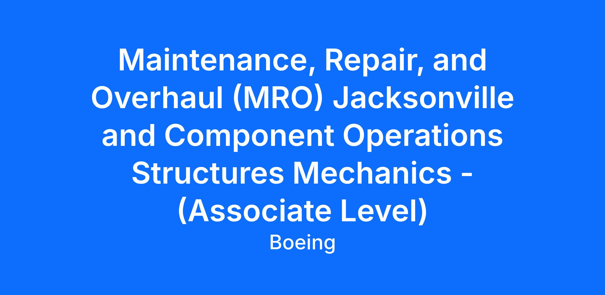 Our MRO Jacksonville facility is seeking Aviation Maintenance Structures Technicians that are motivated to support a greater cause in directly impacting military warfighter readiness by providing critical maintenance repairs and modifications for our military customers. We are proud knowing the products we return to service will strengthen global security.