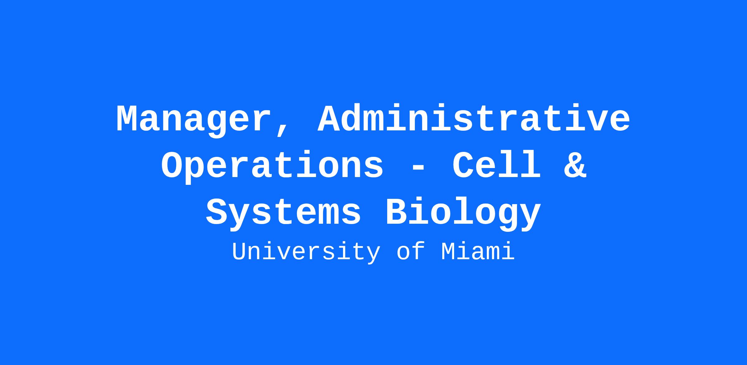 The Department of Cell and Systems Biology is currently seeking a full time Manager, Administrative Operations to work in Miami. The Manager, Administrative Operations (H) oversees departmental/office activities and services including the supervision of staff to achieve maximum productivity and expense control. The incumbent develops procedures and policies for administrative activities and other related internal operations.