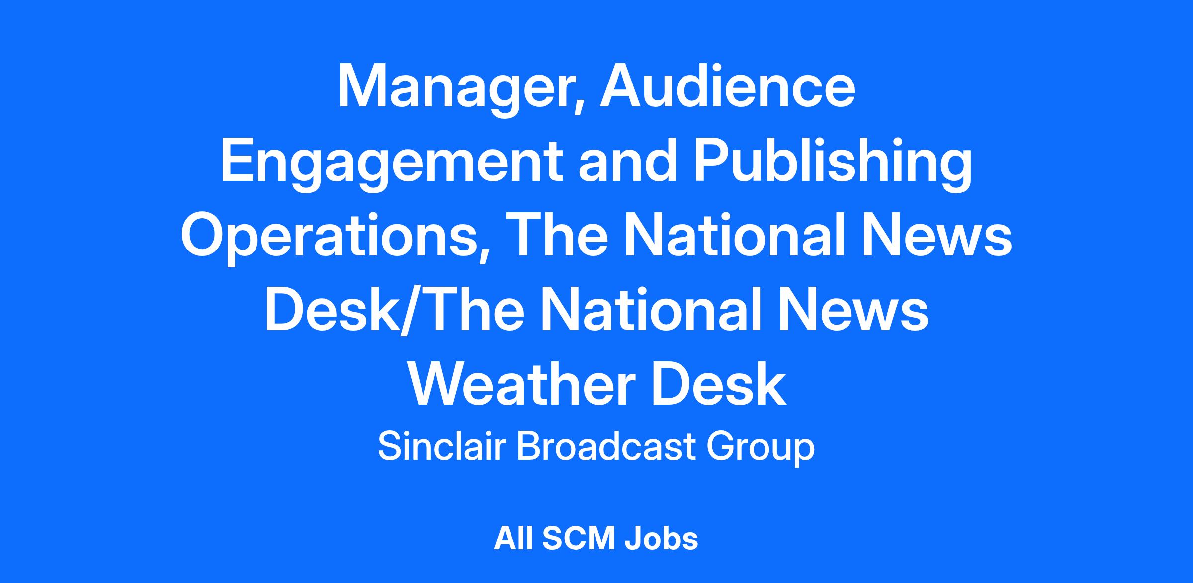 DescriptionThe National News Desk and The National Weather Desk are national editorial platforms with a mission to keep their audiences informed and educated about the issues our communities are facing every day. From major news events, health and safety concerns, politics, and the weather systems outside our doors, as Manager of Audience Engagement and Publishing Operations it will be your job to act as the eyes and ears of our accounts, keeping a finger on the pulse of online conversation, and also serve as the voice of our brands to lead thoughtful interactions with our followers across all platforms. To be successful in this role you must be passionate about news/politics/weather, be well-versed in the language of the internet, hyperaware of social trends, and possess the ability to translate audience data into actionable next steps.
