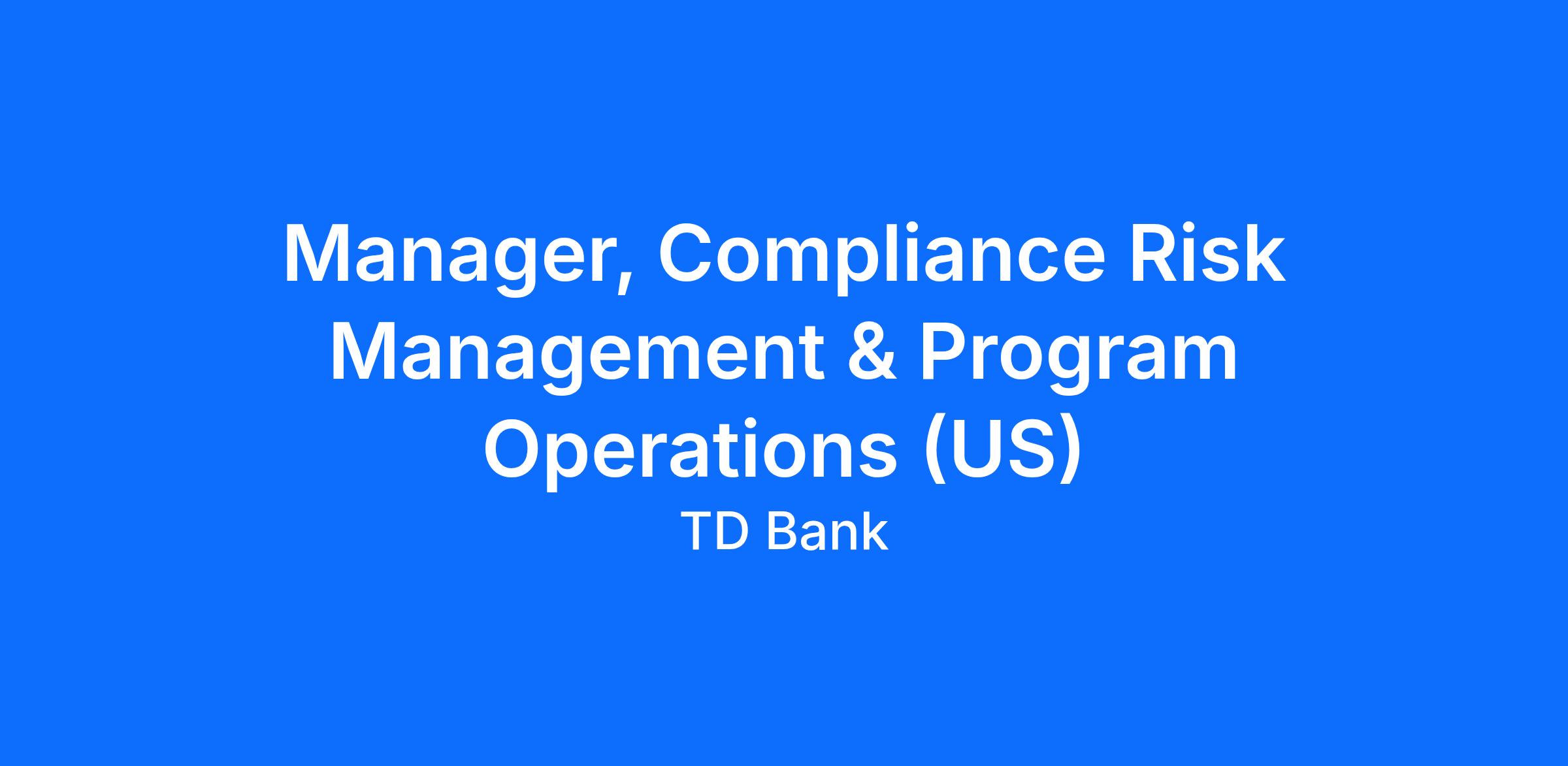 At TD Bank US Compliance, we're on a mission to build a more resilient and scalable compliance risk management function. As part of our team, you'll play a key role in reshaping compliance structures and processes, driving innovation at every level. Here, each team member has a chance to make a tangible impact – both in day-to-day operations and in the design of a future-focused compliance program. This not just about implementing a new program – it's about creating a culture of compliance that will cascade throughout the organization.