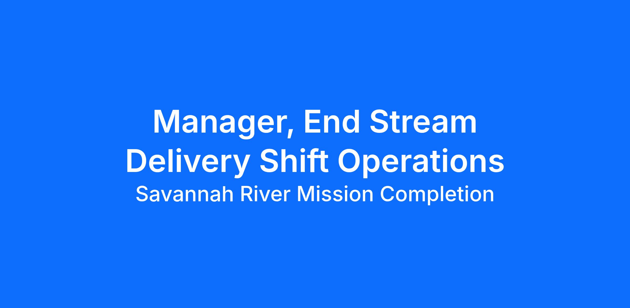 Savannah River Mission Completion (SRMC) is seeking a Manager, Shift Operation End Stream Delivery (ESD) to be based in our Aiken, SC location on the Savannah River Site.