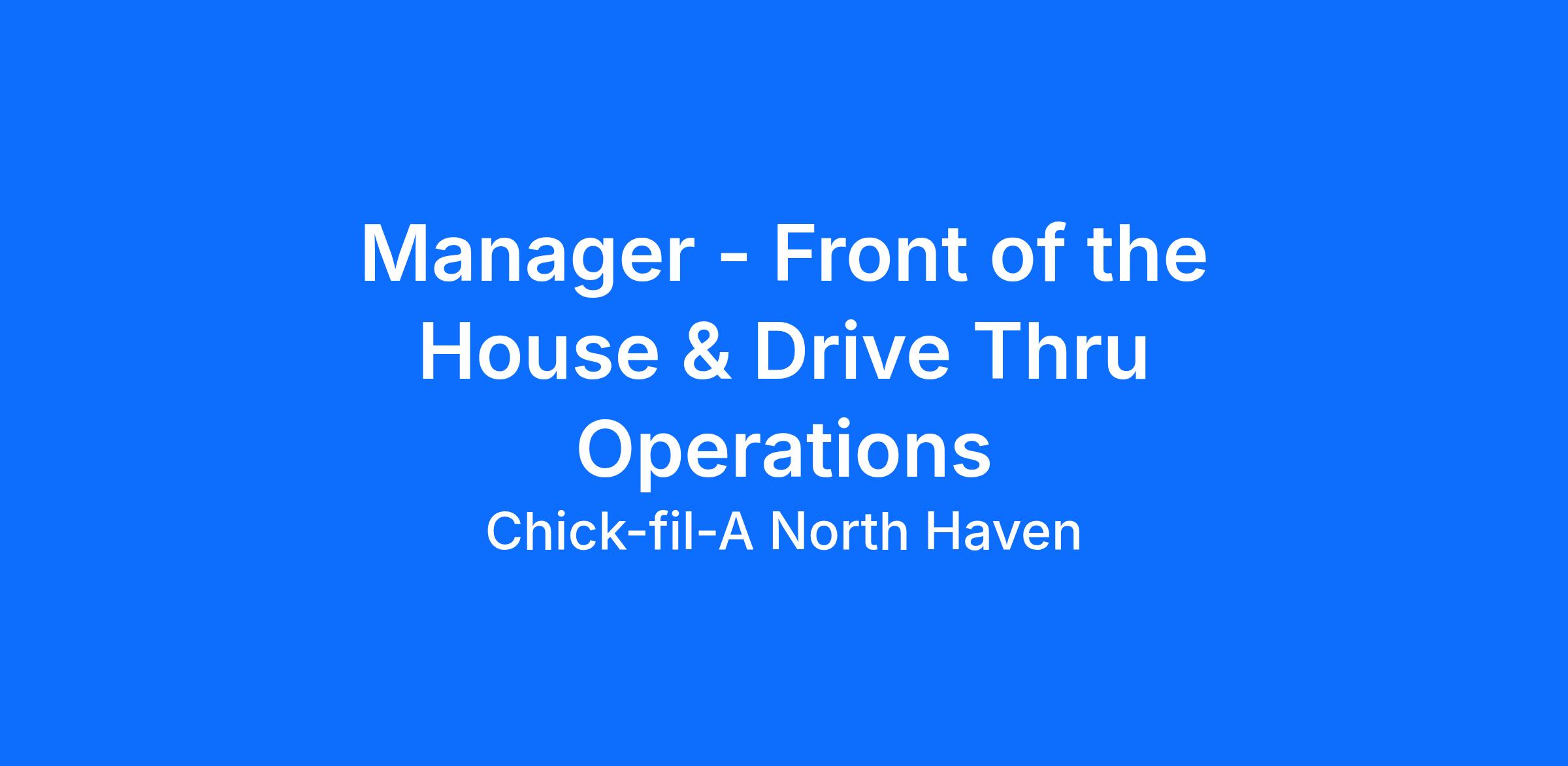 Manager - Front of the House & Drive Thru Operations
