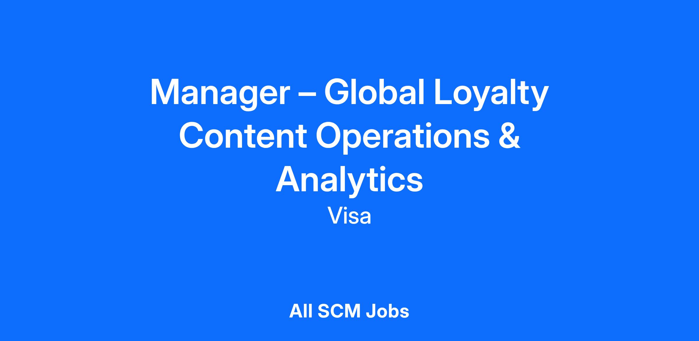 The Manager for Global Loyalty – Content Operations & Analytics will be responsible for sourcing, curating, and operationalizing processes around loyalty and rewards content for Visa’s global loyalty products.