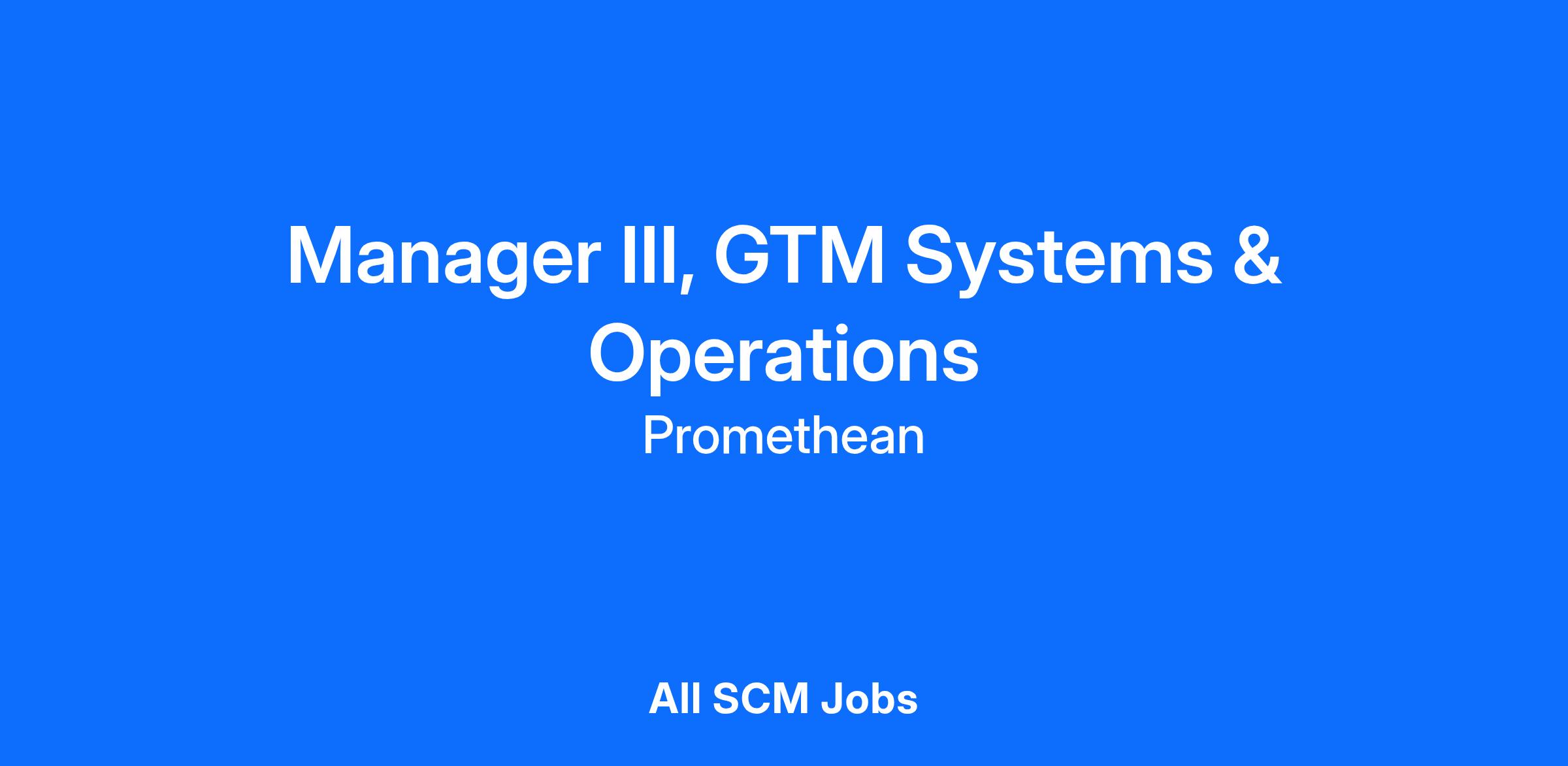 The Manager III, GTM Systems & Operations combines people leadership with process and systems expertise to drive operational excellence across the go-to-market organization. This role leads a team of Sales Operations Analysts and ensures GTM processes and tools—such as Salesforce, HubSpot, Outreach, and CPQ—are optimized for scalability, efficiency, and data integrity. The position emphasizes team development, process governance, and cross-functional alignment to enable revenue growth and informed decision-making.