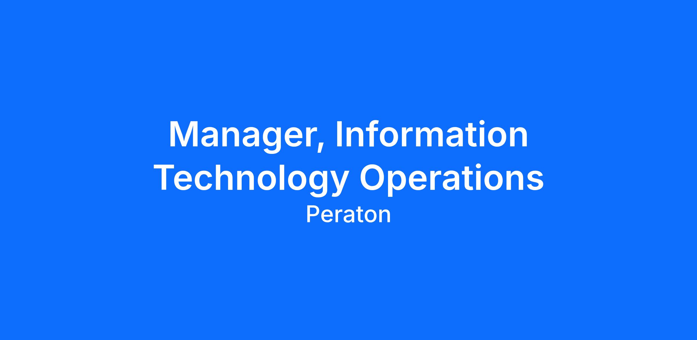 Manager, Information Technology Operations
