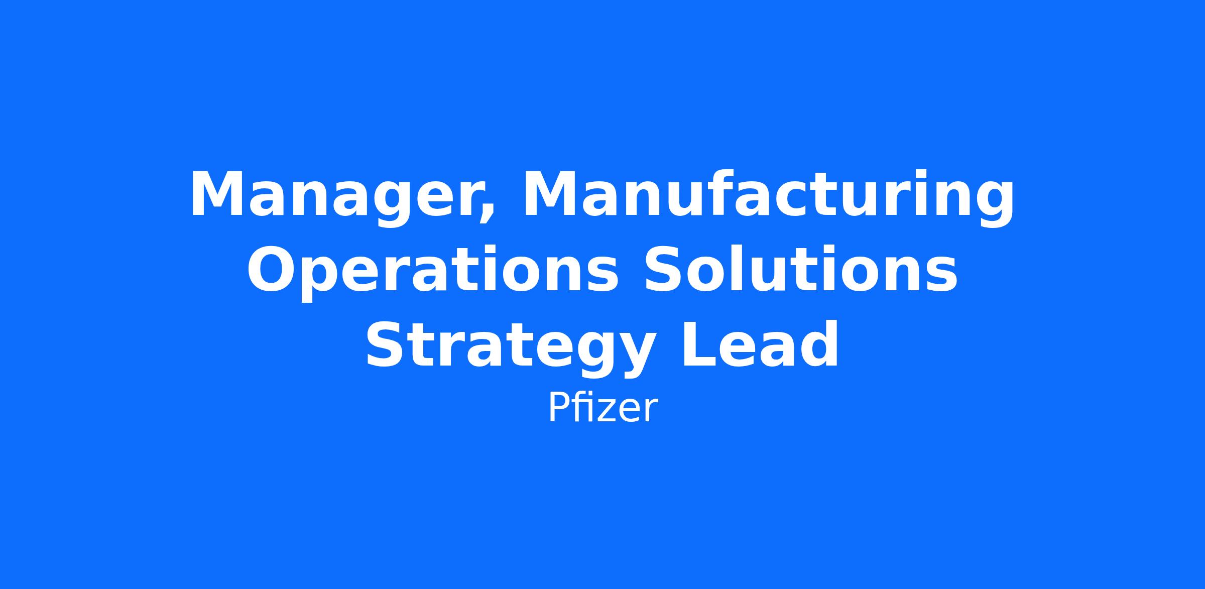 Manager, Manufacturing Operations Solutions Strategy Lead