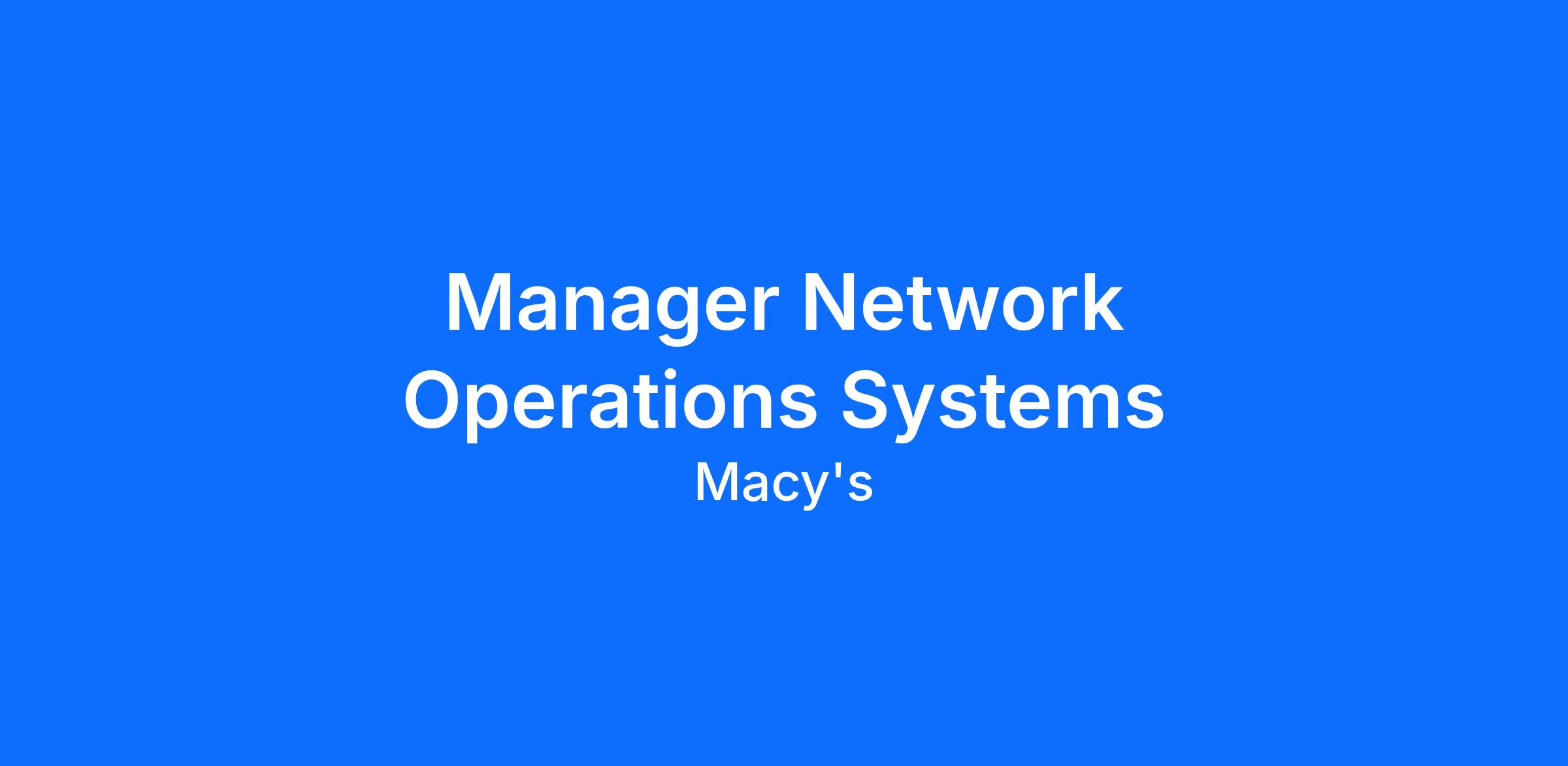 The Manager of Network Systems Operations collaborates with facility operations management, engineering, and the Macy’s Technology WMS Support team to provide comprehensive technology support, including trouble resolution and special projects. Emphasis is placed on proactive measures to enhance throughput. This position reports to the Macy's Supply Chain Network Systems Team.