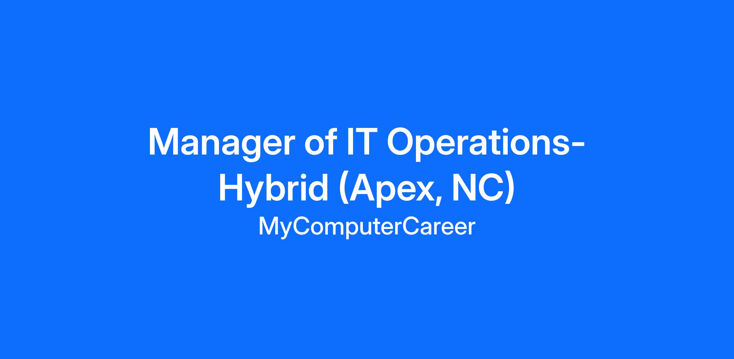 The IT Operations Manager position, from My Computer Career’s leadership office, oversees and directs the day-to-day activities of the organization’s information technology (IT) department, ensuring that systems, services, and infrastructure work reliably and securely. IT operations managers lead teams that develop and implement networks and servers, respond to user help desk requests, and monitor system stability and performance.