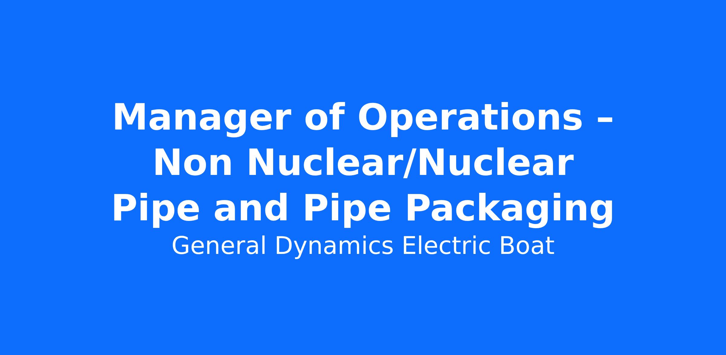 The Manager of Operations must provide technical/trade direction and overall responsibility for all the Non Nuclear/Nuclear Pipe Shop and Pipe Packaging activities at the Quonset Point facility (QP). Candidate will be the Resource Manager responsible for all Non Nuclear and Nuclear pipefitting trades at QP. Responsibilities will include facility manpower planning and hiring that support contract and schedule requirements. The individual selected will be responsible for proper trade resource placement throughout the facility as well as training and core competency requirements. Candidate will support and execute Principles of Operational Excellence - People, Product, Process, Performance and Plant/Equipment.