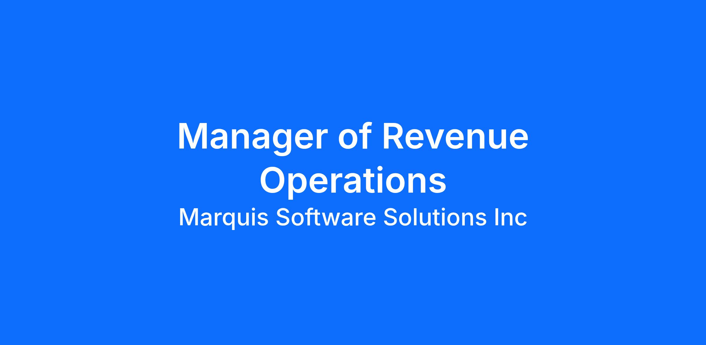 At Marquis, we count on our team members to solve complex business problems with creativity and passion, always looking to learn something new, challenge each other to be great, and be able to fail fast and succeed often. The Director of Revenue Operations plays a critical role enabling Sales, Marketing, and Client Success with the systems, processes, analytics, and operational support needed to drive predictable growth. This person is a hands-on operator, data analyst, and process optimizer with focus on day-to-day revenue operations, revenue operations, reporting, forecasting accuracy, and sales lifecycle analytics across the sales and marketing organization.