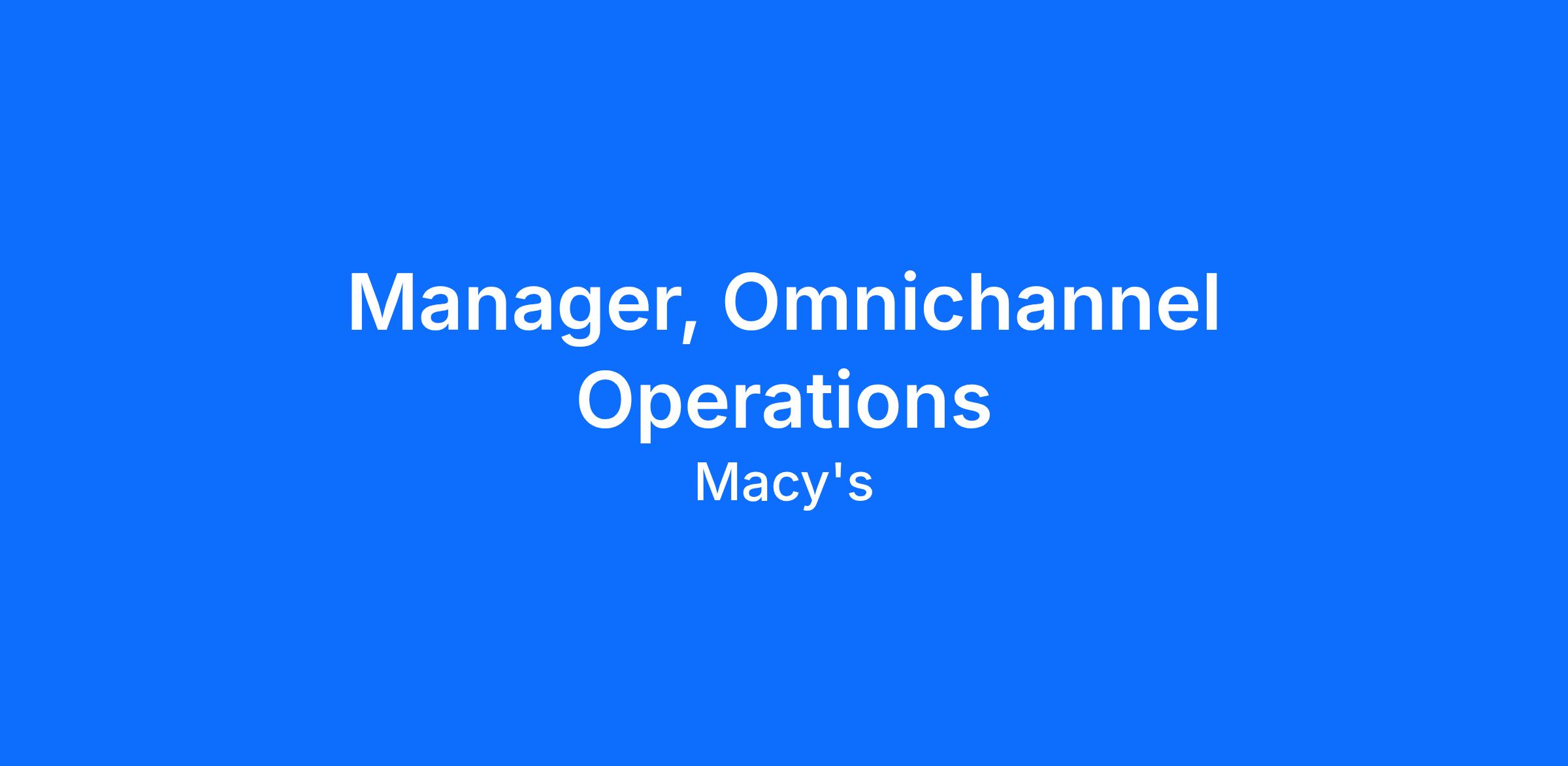 The Manager, Omnichannel Operations is essential to the growth and success of Macy's Omni customer service strategy within the At Your Service, Signing, and Merchandise Logistics areas. This role guides a diverse and inclusive team to ensure merchandise is ready for shipment or in-store pick-up, whenever and wherever the customer specifies. The Manager hires and coaches staff to manage product movement and fulfillment logistics while maintaining an engaging work environment. Additionally, this role drives sales and profit by exceeding success indicators for the Omni customer experience.