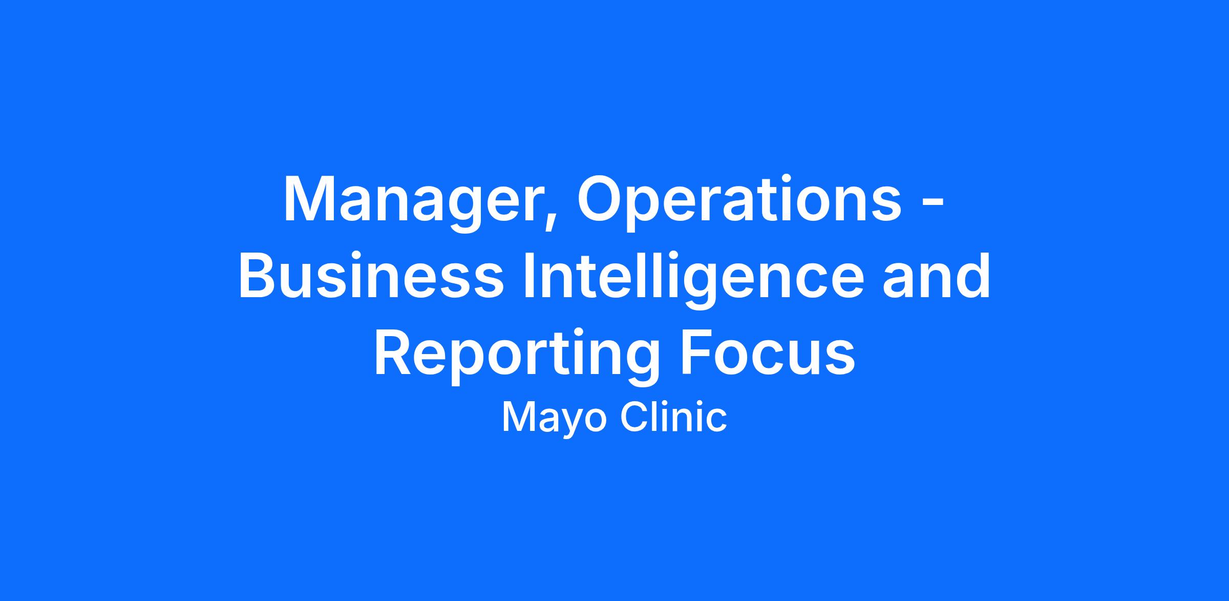 The Manager – Data Operations – Business Intelligence and Reporting Focus manages the operational functions and day-to-day business activities within the Operations business team focused on enterprise reporting and data logistics in the Department of Business Development (BD) (previously known as Mayo Clinic Ventures (MCV) and Corporate Development). May provide supervision, training and delegation of duties to Operations staff. Manages the intellectual proprietary (IP) database and software systems and their tactical use. Manages staff, completes performance reviews, overcomes conflicts and is an effective team builder. The incumbent assists the BD Operations Leadership with database planning activities, optimizing database functionality and enhancing database utility for internal BD users and external departmental staff and innovators. Initiates and facilitates activities to establish and enhance operational activities, financial analysis, license agreement entry and distribution, billing, payment distribution and other departmental activities and processes. Is responsible for the implementation and maintenance of programs and tools for reporting operational and financial data, including the management of agreement, patent and disclosure information; royalty sharing policies; royalty sharing distributions; statistical performance data; and takes a lead role in operational policy and practice implementation and management. The Manager – Data Operations – Business Intelligence and Reporting Focus also supports research, analysis and benchmarking to ensure reasonableness and accuracy of information, along with identifying and implementing best practices and improvements. The Manager – Data Operations – Business Intelligence and Reporting Focus may also provide assistance to specific divisions/departments on selected institutional initiatives.