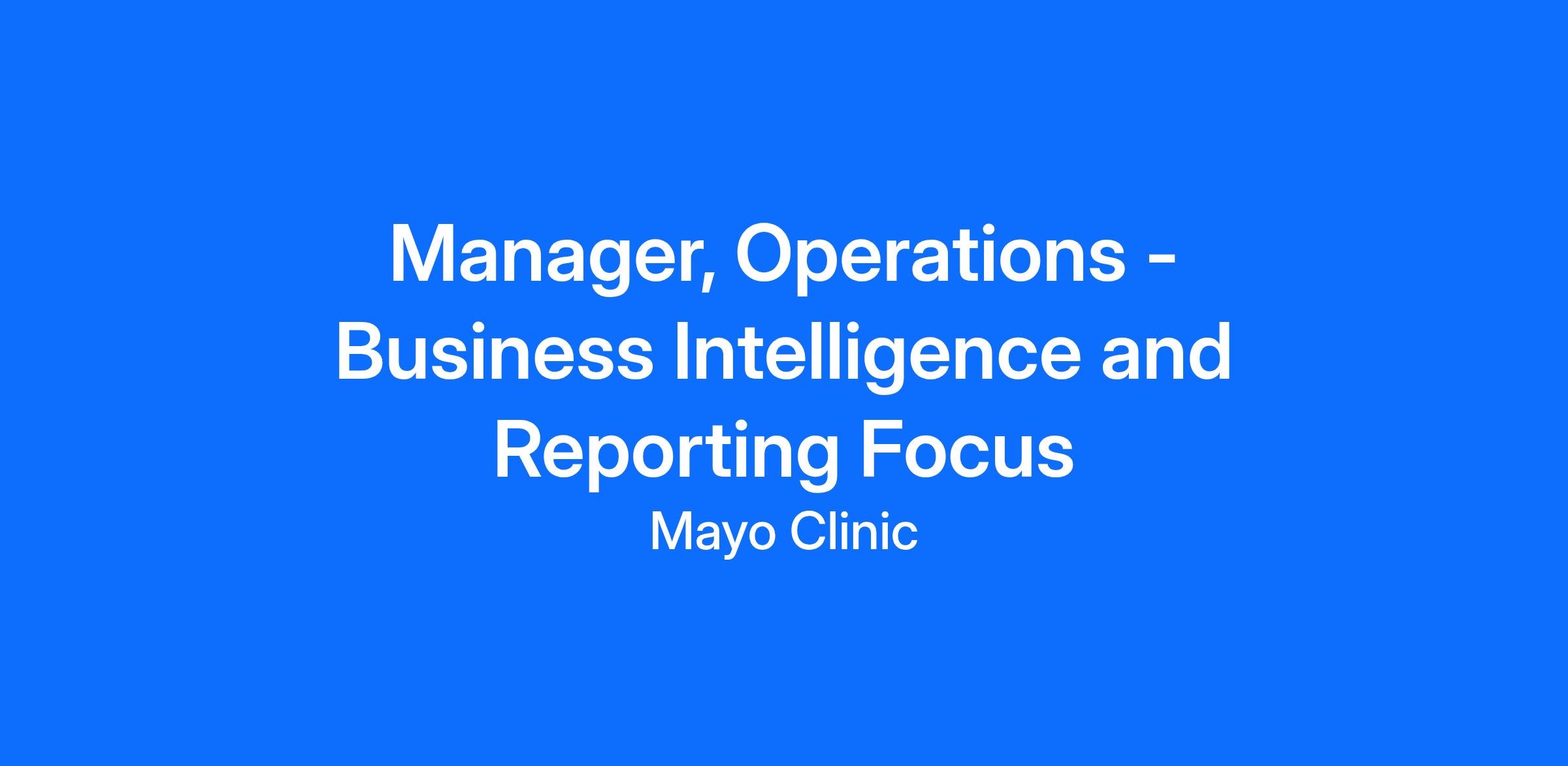 The Manager – Data Operations – Business Intelligence and Reporting Focus manages the operational functions and day-to-day business activities within the Operations business team focused on enterprise reporting and data logistics in the Department of Business Development (BD) (previously known as Mayo Clinic Ventures (MCV) and Corporate Development). May provide supervision, training and delegation of duties to Operations staff. Manages the intellectual proprietary (IP) database and software systems and their tactical use. Manages staff, completes performance reviews, overcomes conflicts and is an effective team builder. The incumbent assists the BD Operations Leadership with database planning activities, optimizing database functionality and enhancing database utility for internal BD users and external departmental staff and innovators. Initiates and facilitates activities to establish and enhance operational activities, financial analysis, license agreement entry and distribution, billing, payment distribution and other departmental activities and processes. Is responsible for the implementation and maintenance of programs and tools for reporting operational and financial data, including the management of agreement, patent and disclosure information; royalty sharing policies; royalty sharing distributions; statistical performance data; and takes a lead role in operational policy and practice implementation and management. The Manager – Data Operations – Business Intelligence and Reporting Focus also supports research, analysis and benchmarking to ensure reasonableness and accuracy of information, along with identifying and implementing best practices and improvements. The Manager – Data Operations – Business Intelligence and Reporting Focus may also provide assistance to specific divisions/departments on selected institutional initiatives.