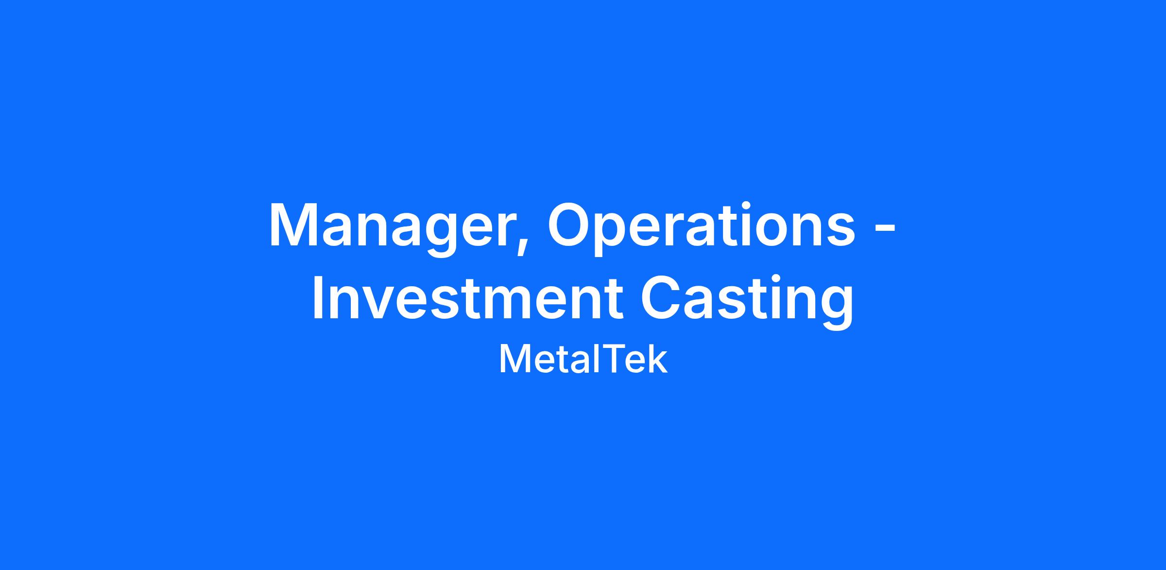 Puts safety first every day, takes responsibility to make and keep commitments, is personally invested to deliver MORE to all customers, and celebrates the success of the team. Bachelor of Science degree in metallurgy, materials sciences, engineering or related discipline is preferred. Minimum of 7 years of production experience in a leadership position with a strong understanding of foundry and metals manufacturing processes such as: investment casting wax and shelling, induction melting, pouring, finishing, and high alloy ferrous, nickel, and cobalt based alloy background strongly desired.