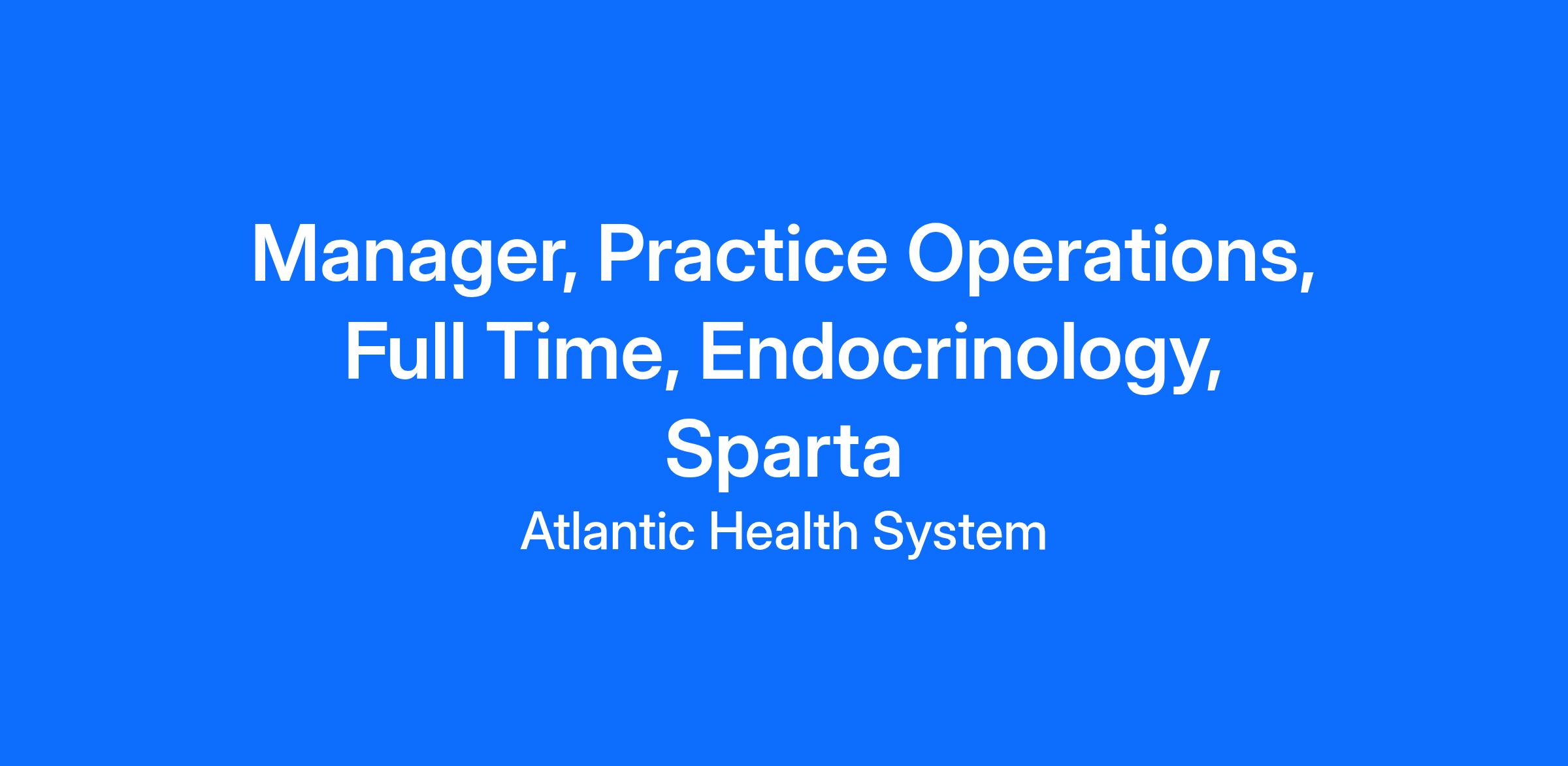 Atlantic Medical Group Endocrinology at Sparta and Hackettstown is seeking a Practice Manager.