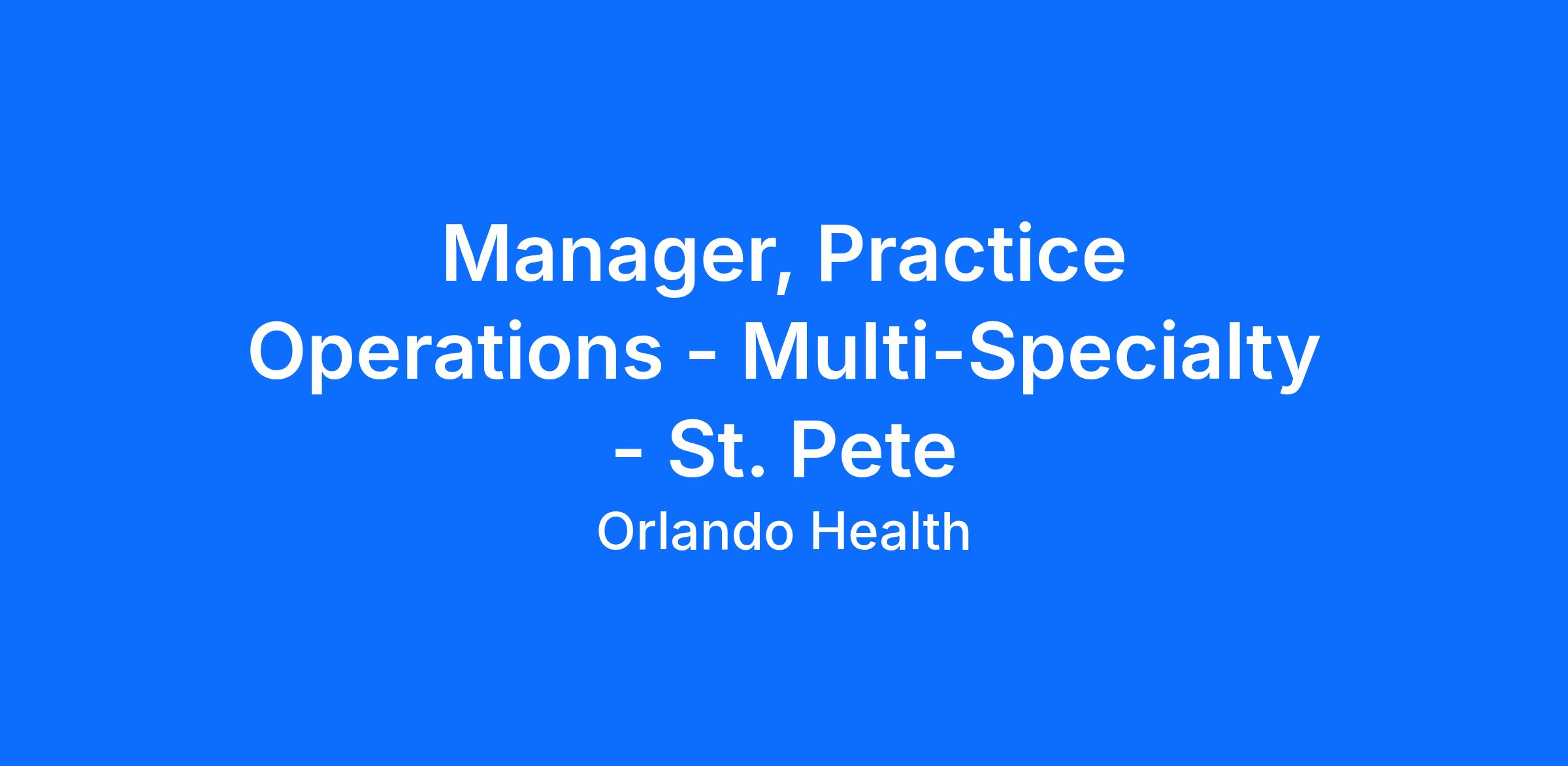 Title: Manager, Practice Operations